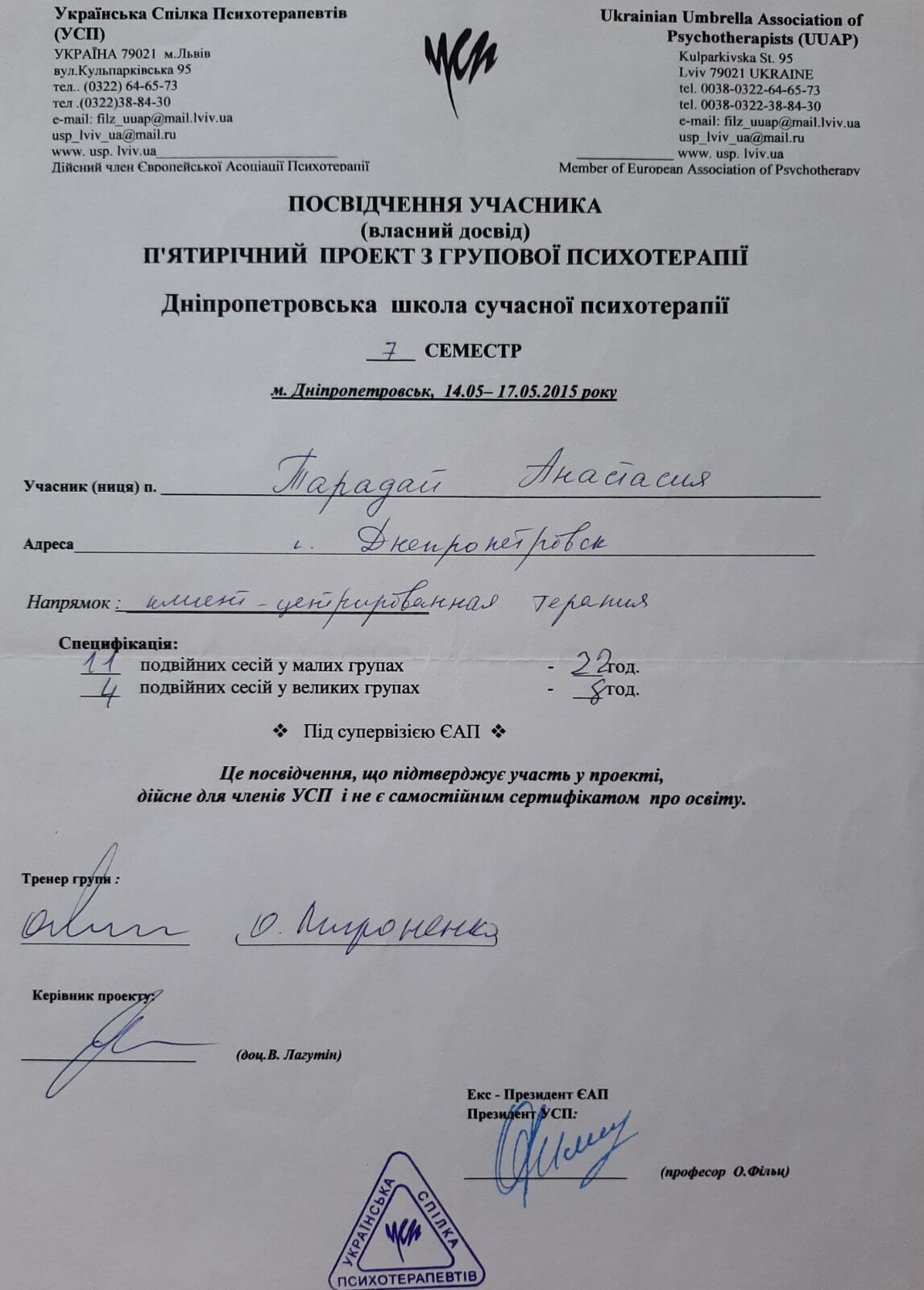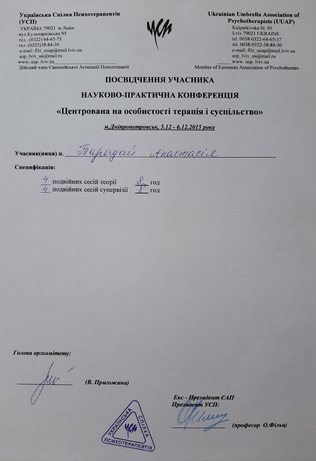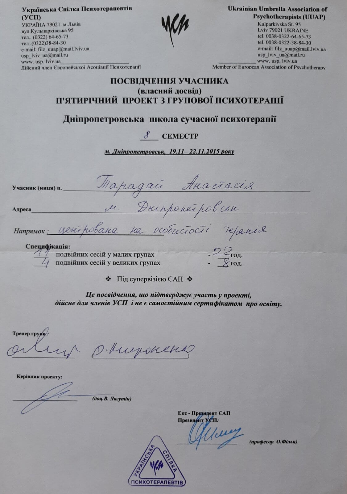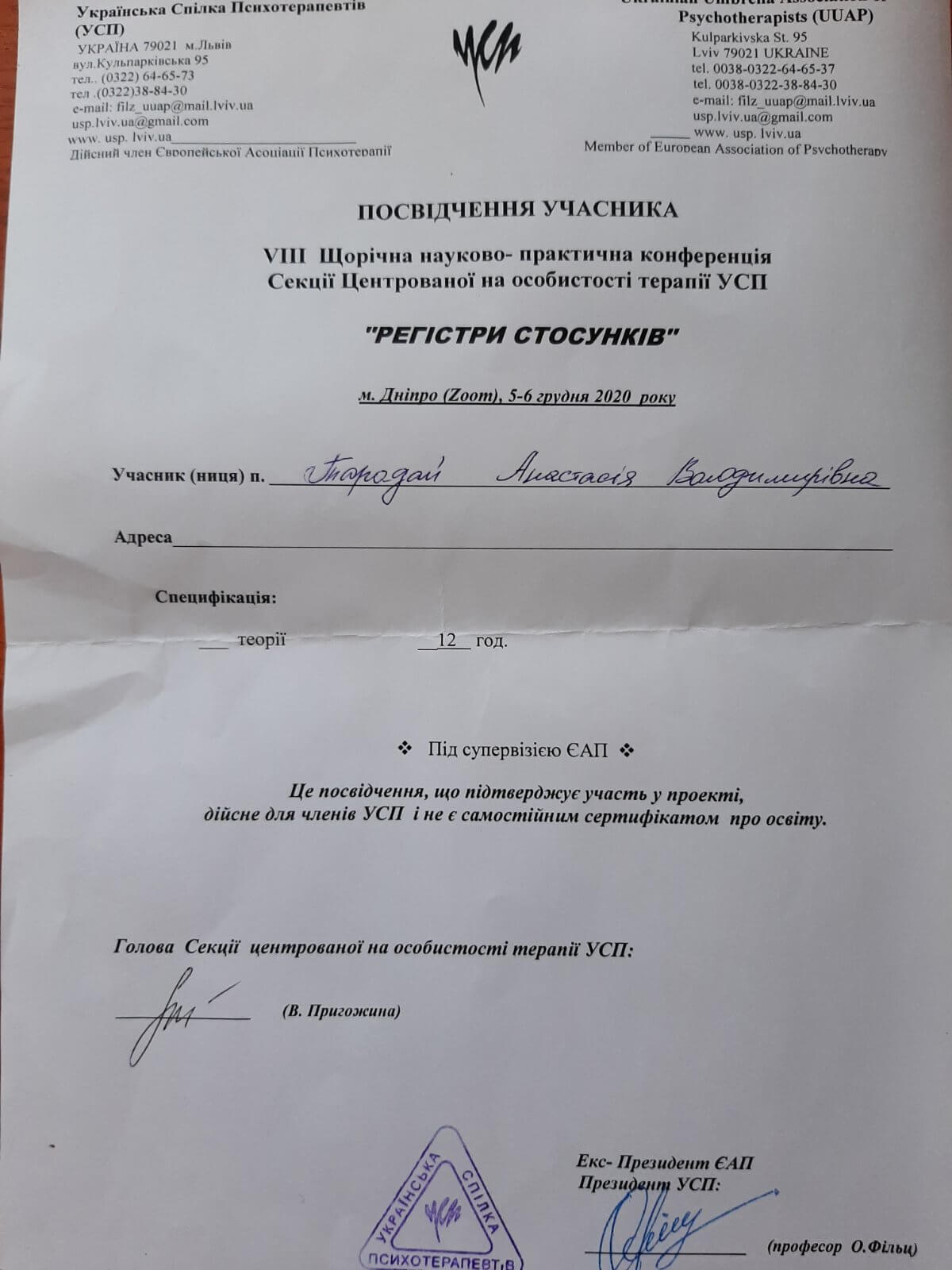 Дополнительное психотерапевтическое образование - Украинский союз психотерапевтов, Клиент-центрированная психотерапия (по К. Роджерсу), Психотерапевт.