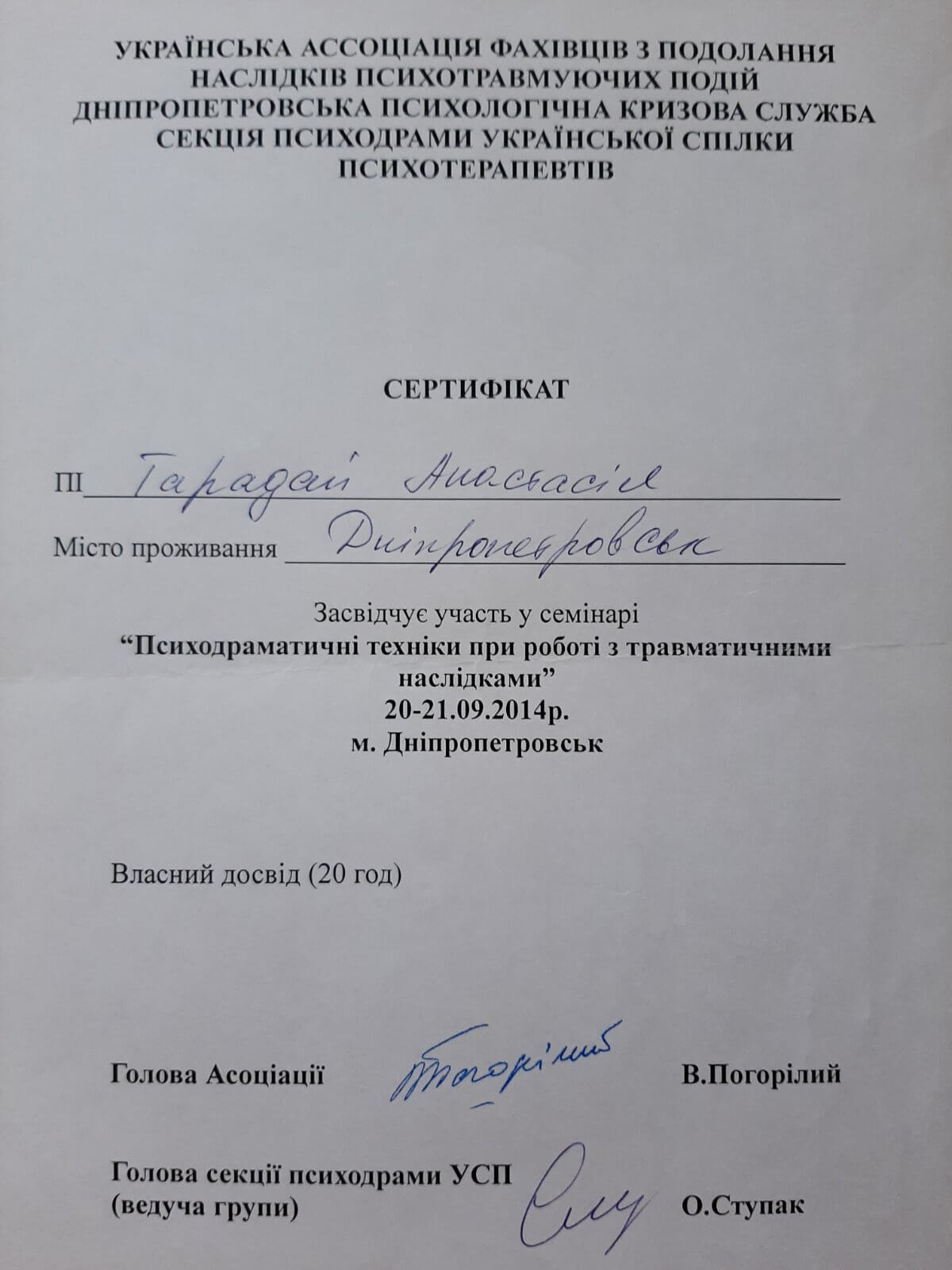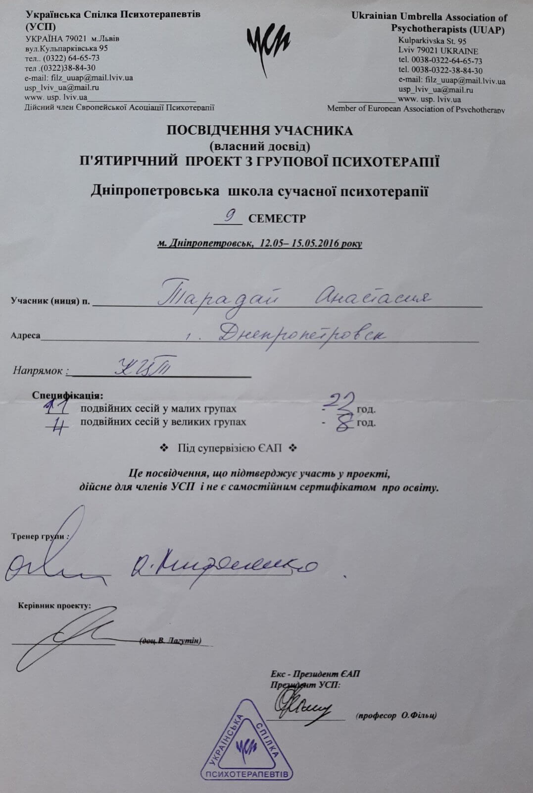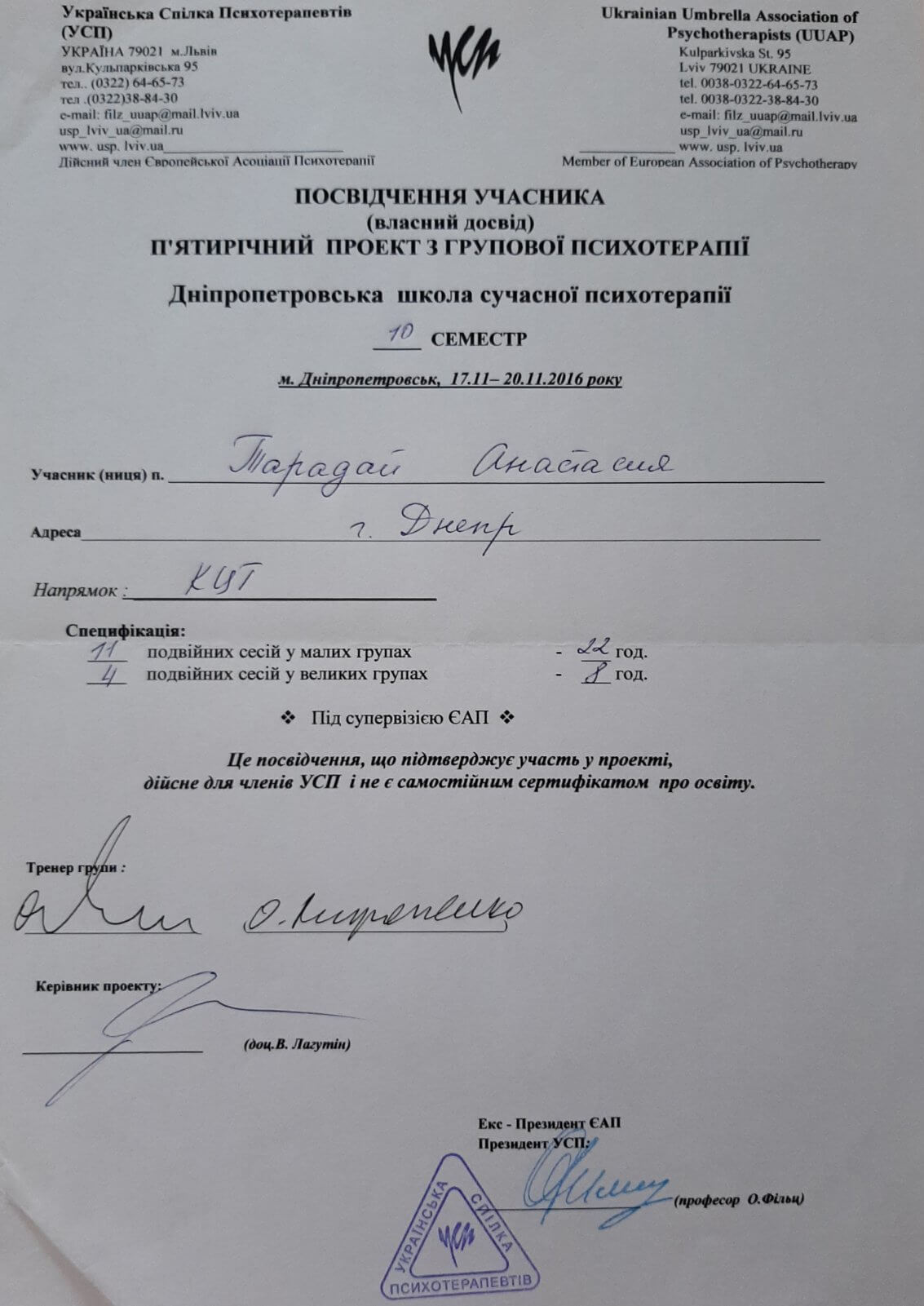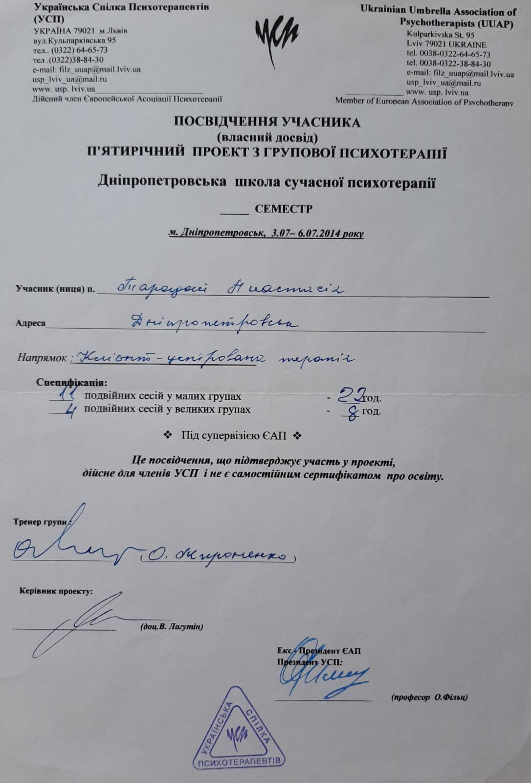 Дополнительное психотерапевтическое образование - Украинский союз психотерапевтов, Клиент-центрированная психотерапия (по К. Роджерсу), Психотерапевт.