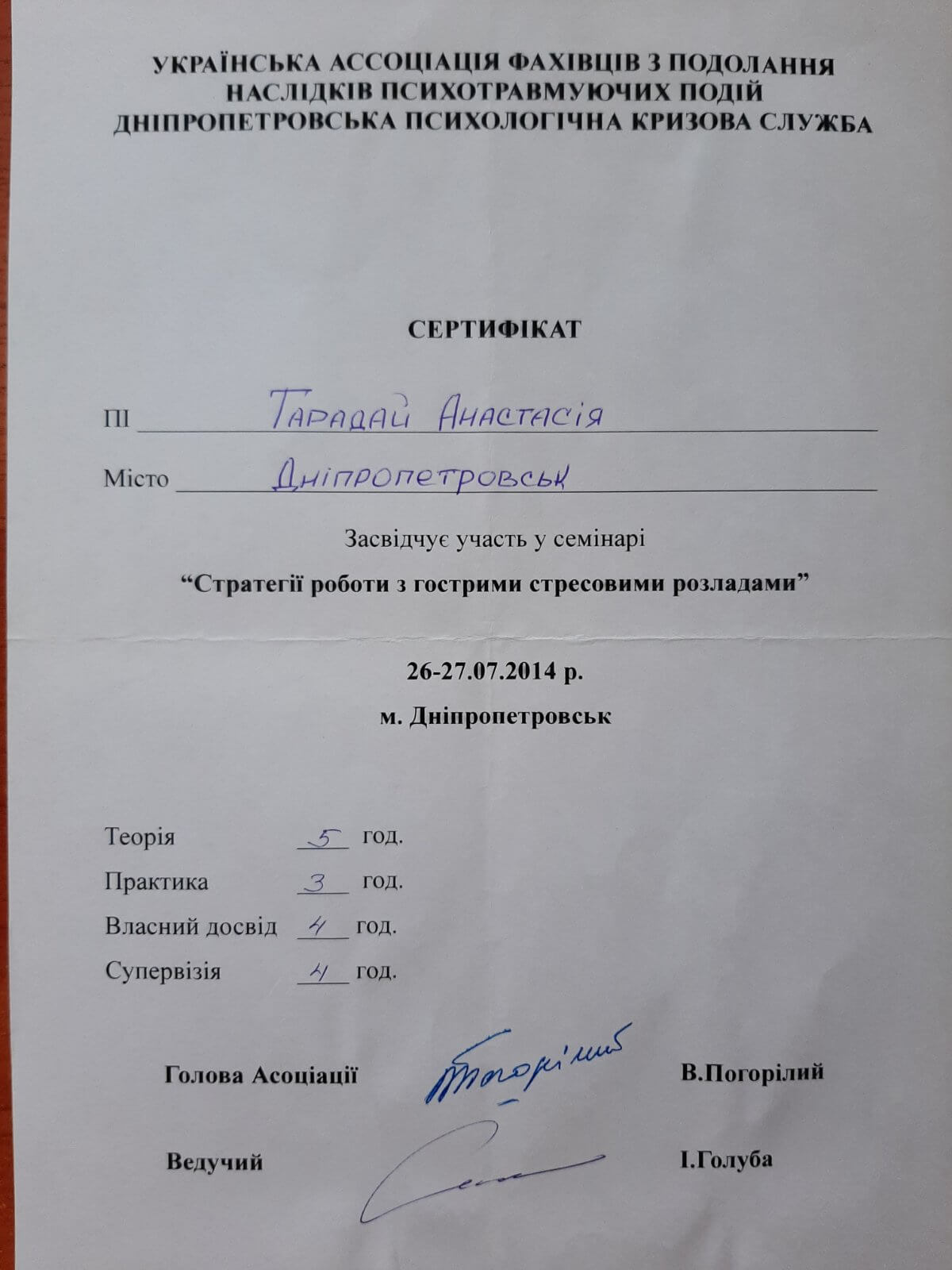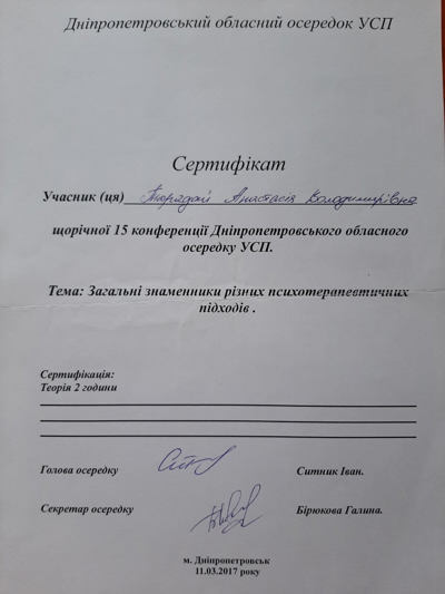 Базовое психологическое образование - Днепропетровский национальный университет им.О.Гончара, Психология.