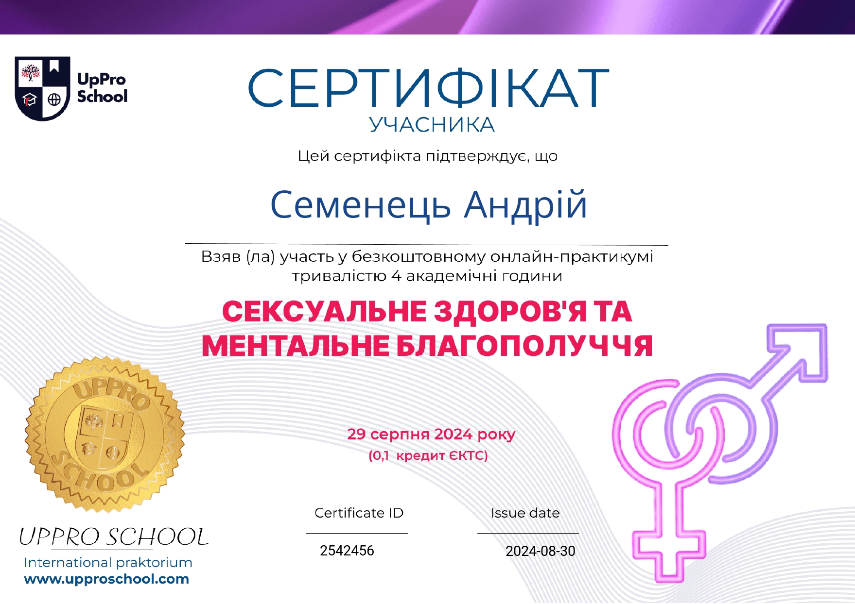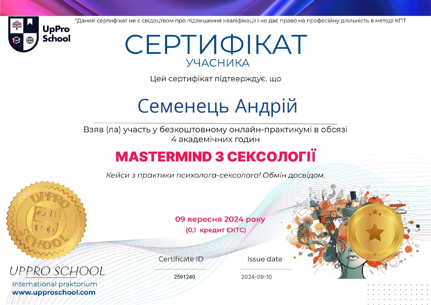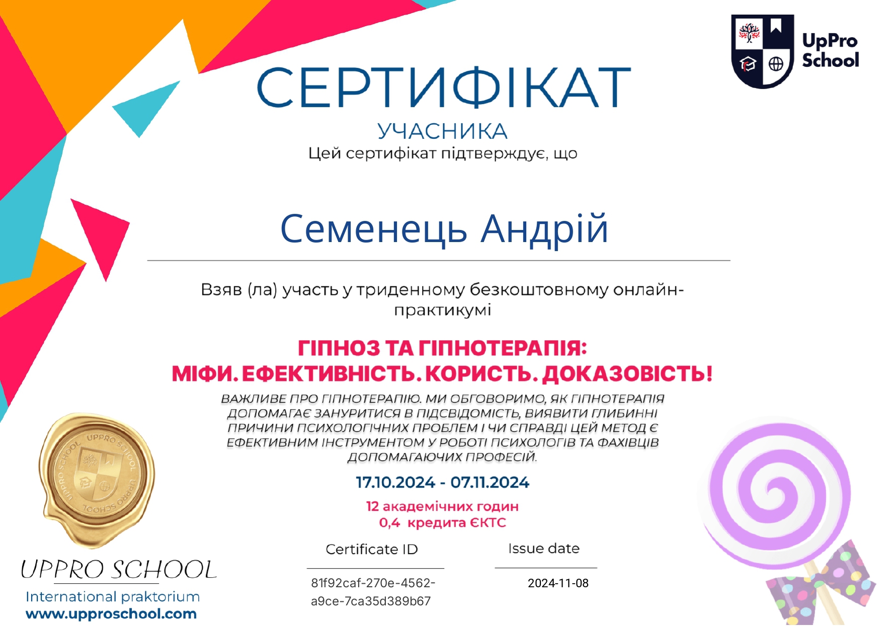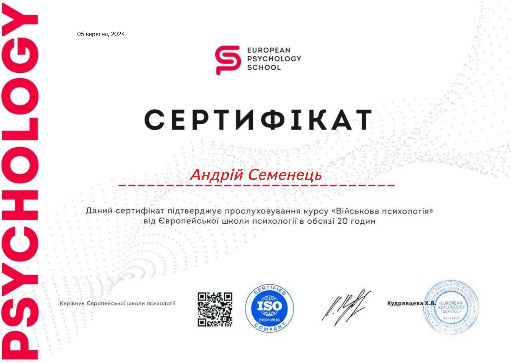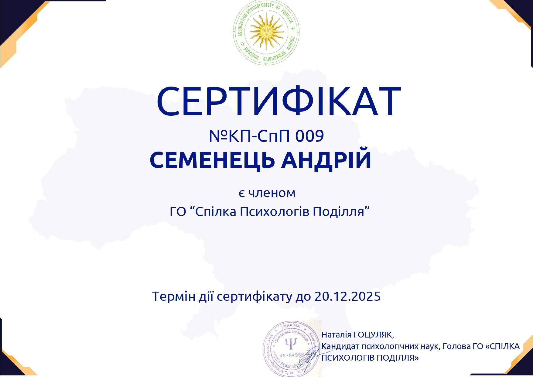 В 2022 получил квалификацию Магистр по направлению 053 Психология КПНУ им. Ивана Огиенко