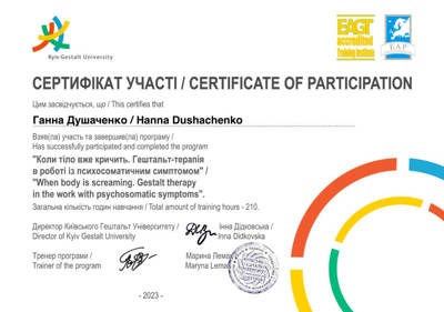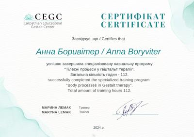 2020-2024 2 степень Киевского Гештальт Университета г. Львов (тренер: Т. Конрад)