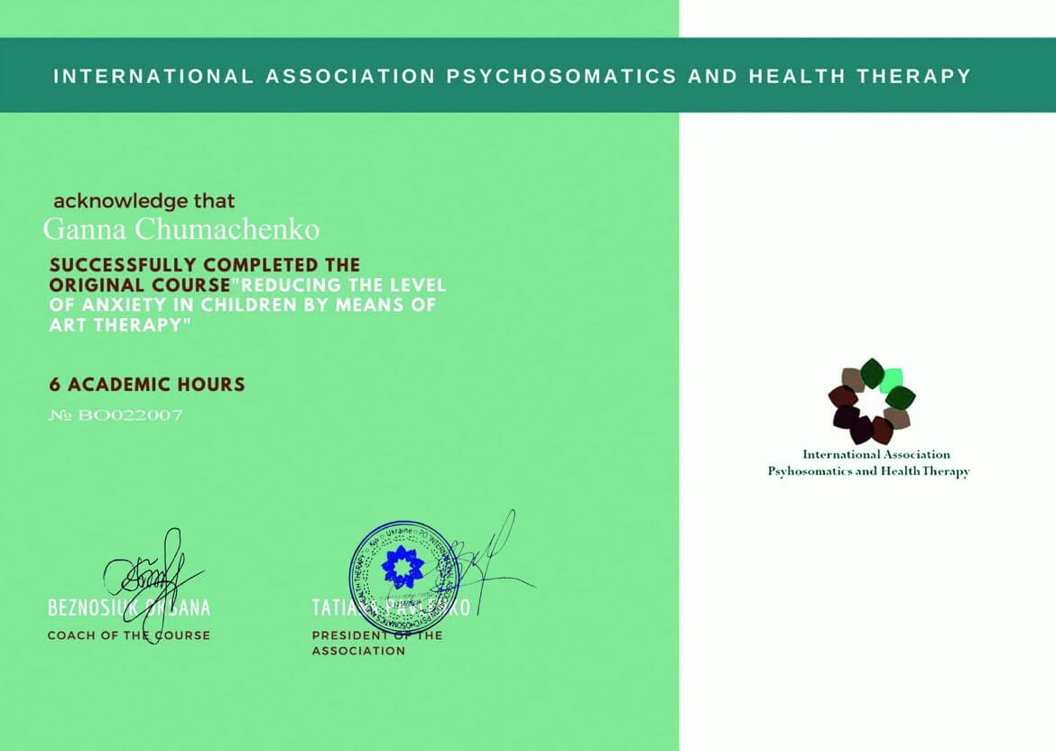Имею личную и групповую терапию, постоянно посещаю обучающие мастер-классы, лекции, работаю под супервидением, ведущая групп.