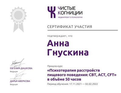 Психотерапия расстройств пищевого поведения, CBT, ACT, CFT, 2021 год.