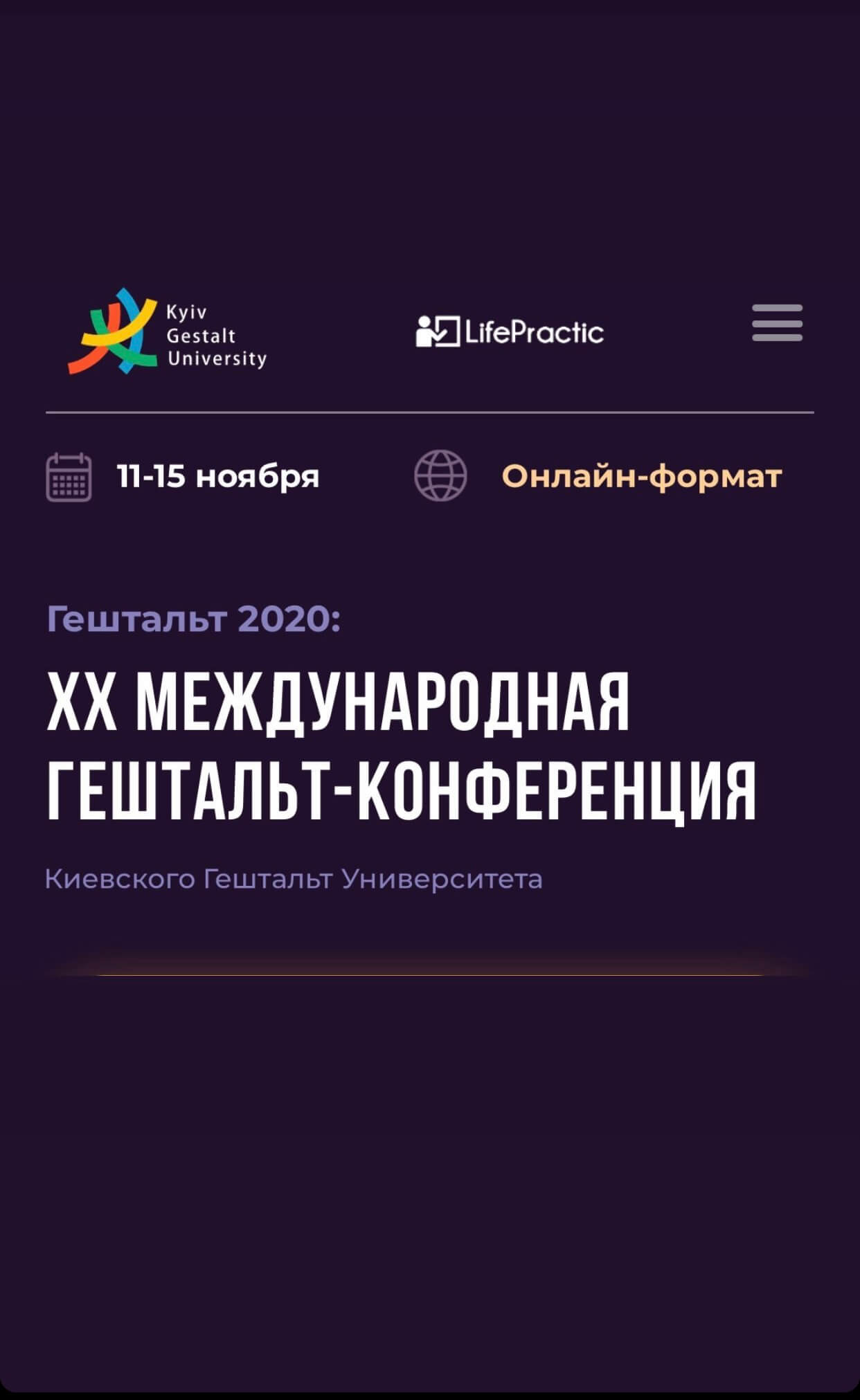 Факультет психології ХНУ ім. Каразіна, перший ступінь підготовки гештальт-терапевтів МІГІП, зараз знаходжусь на другому ступені.