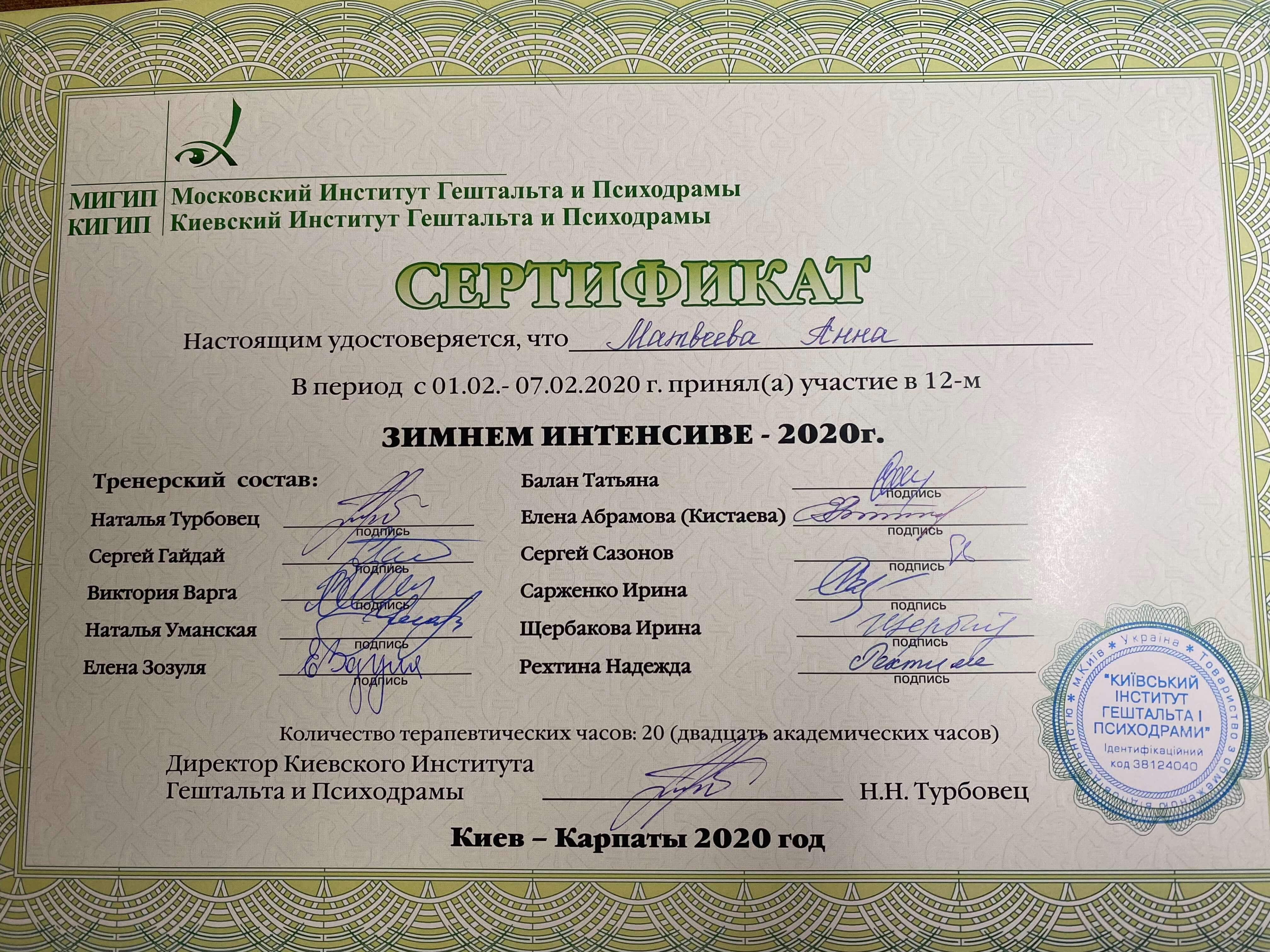 Сертификаты: