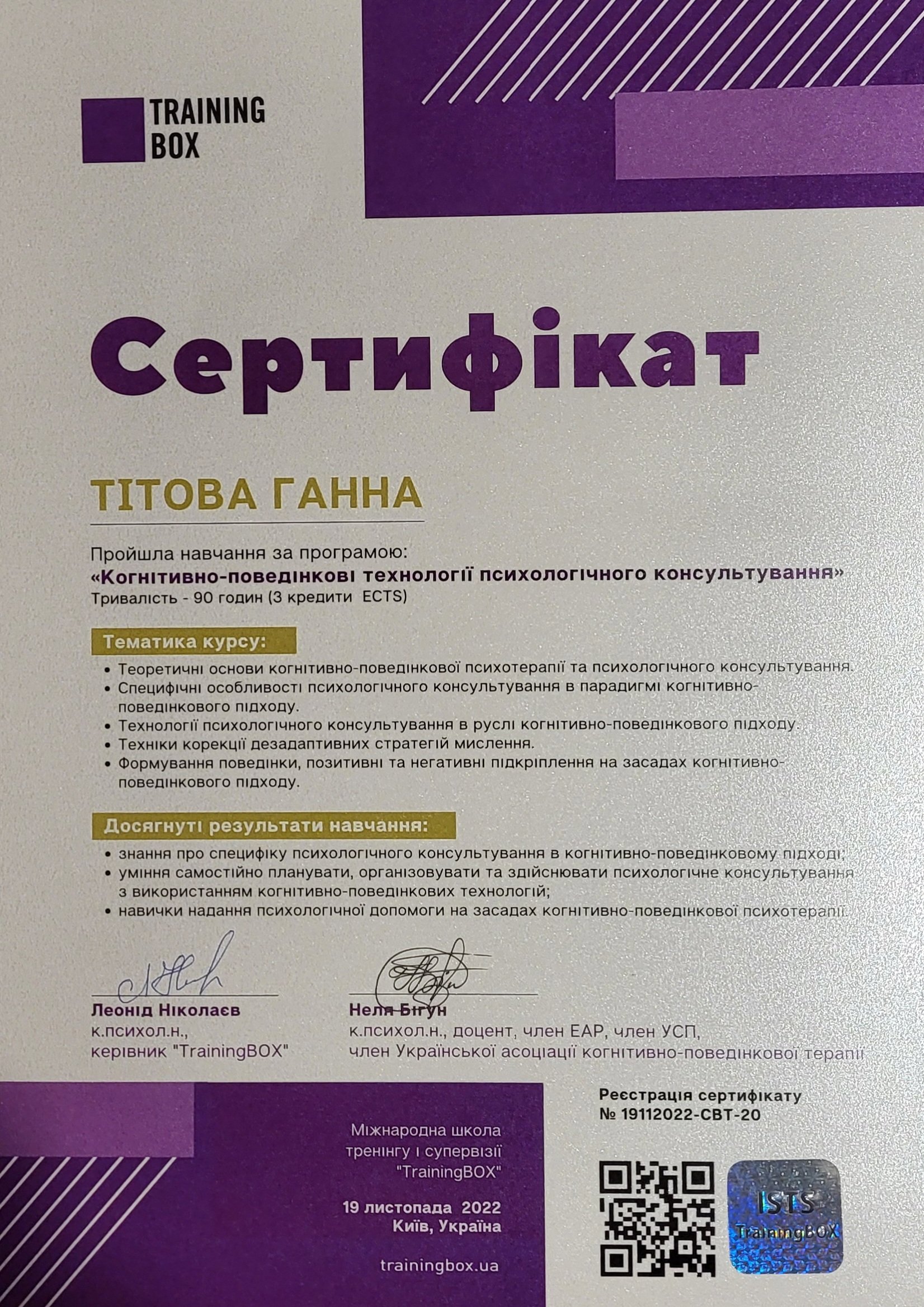 "Когнитивно-поведенческие технологии психологического консультирования" TrainingBox/Центр развития личности.