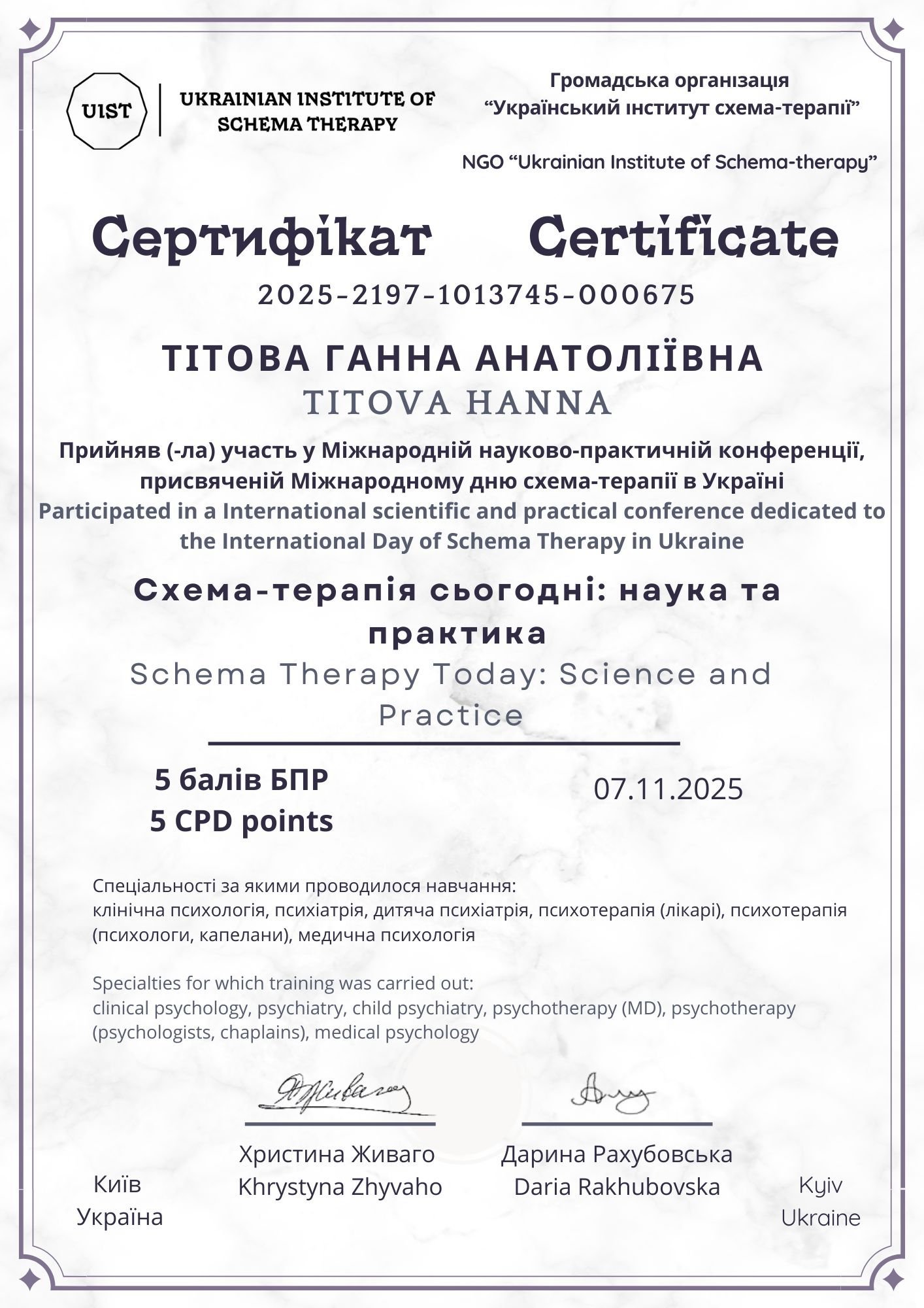 Міжнародна науково-практична конференція, присвячена Міжнародному дню схема-терапії в Україні "Схема-терапія сьогодні: наука та практика"
