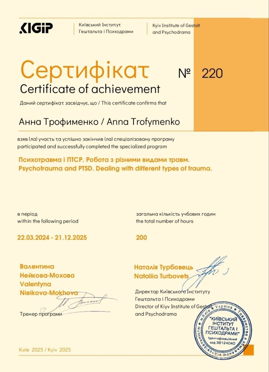 Психотравма і ПТСР. Робота з різними видами травм.