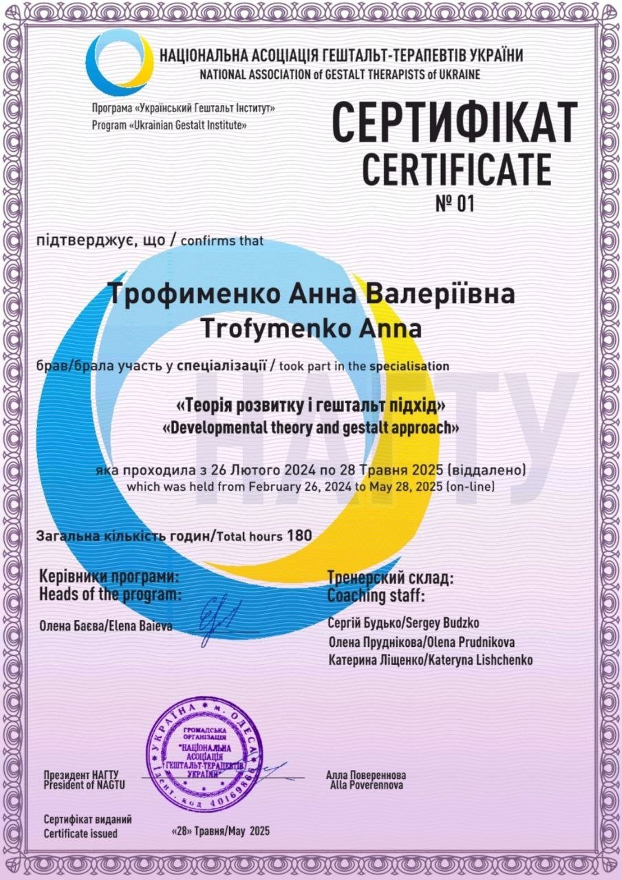 НАЦІОНАЛЬНА АСОЦІАЦІЯ ГЕШТАЛЬТ-ТЕРАПЕВТІВ УКРАЇНИ