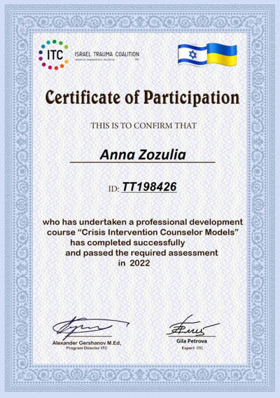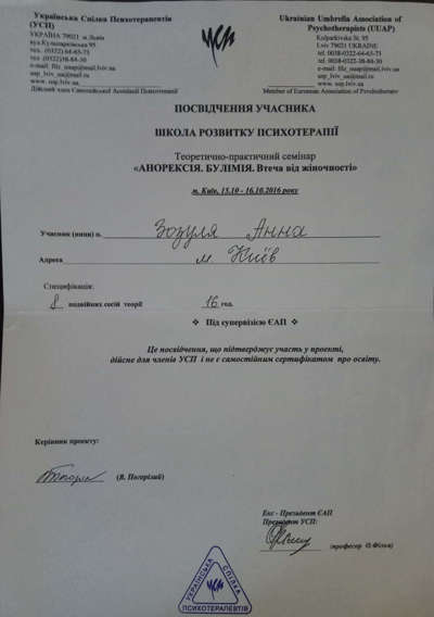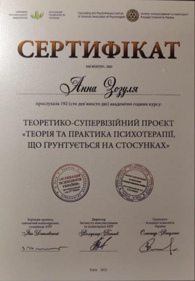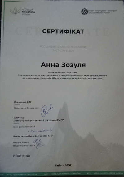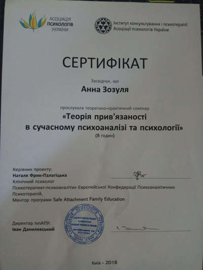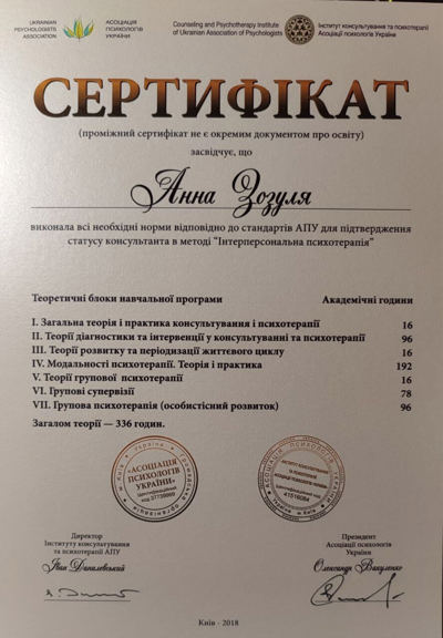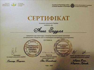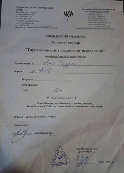 2016 - 2020 «Институт консультирования и психотерапии» Ассоциации психологов Украины.