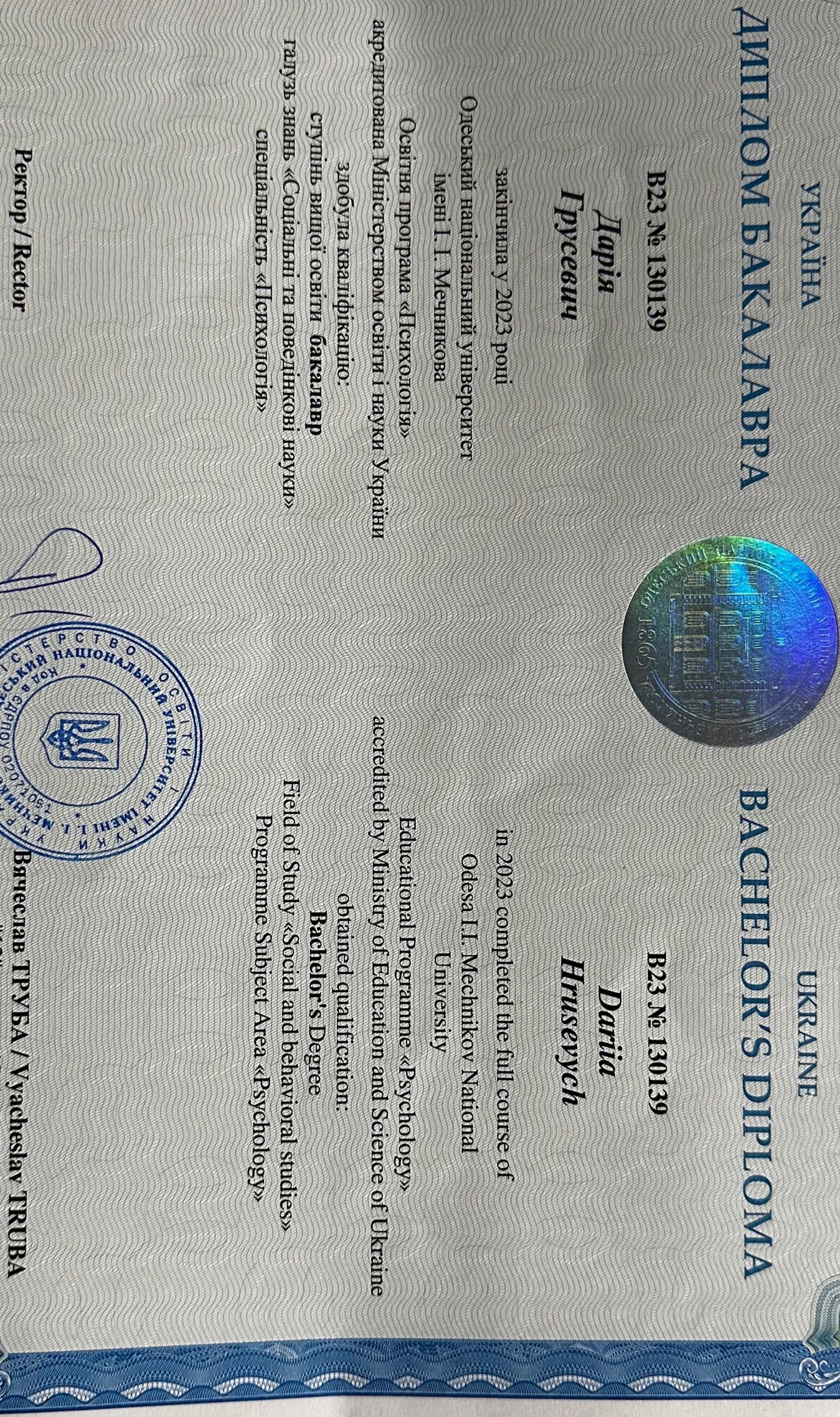 Окончила ОНУ им. Мечникова по специальности Психолог.