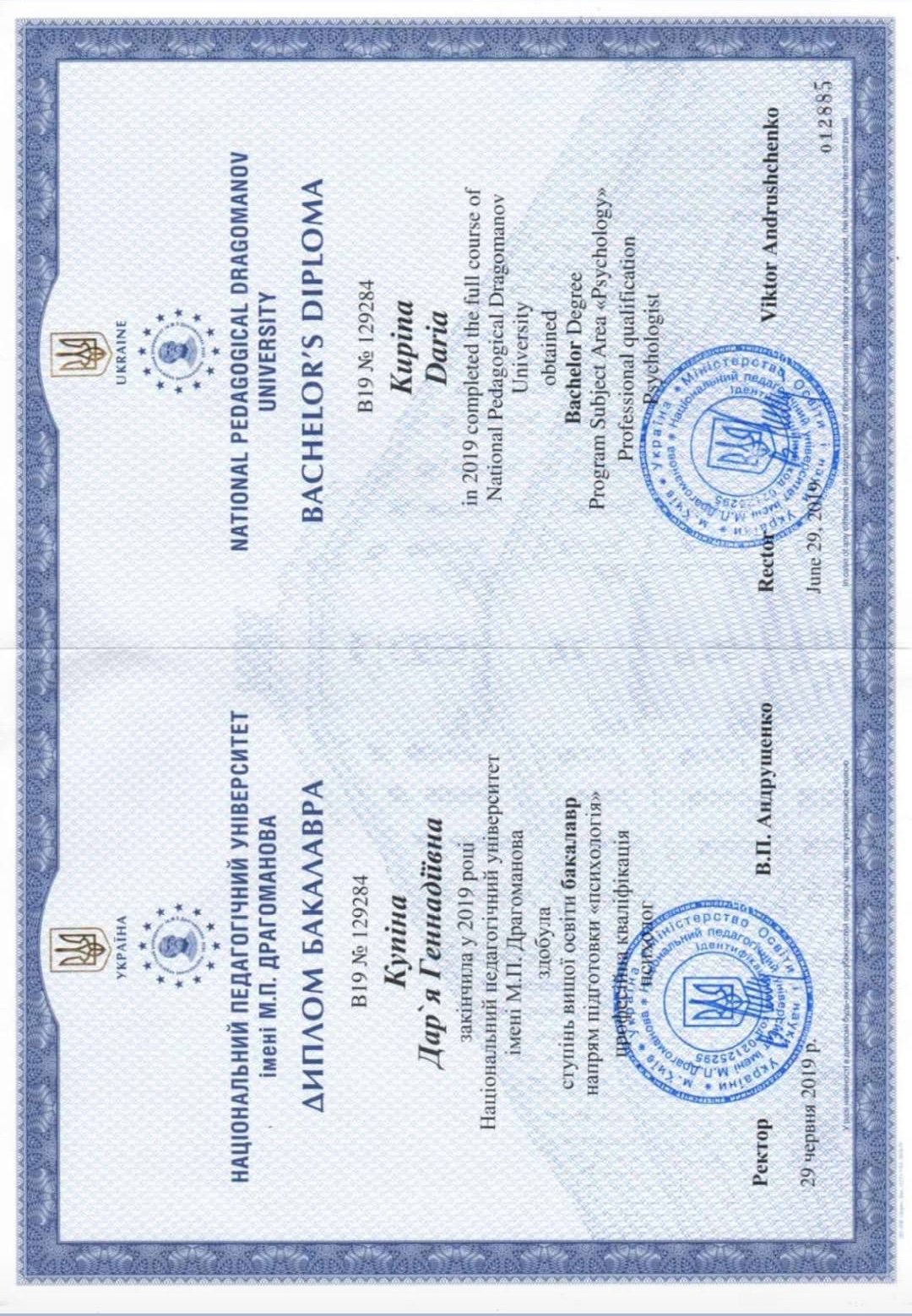 По образованию я не только психолог, но и физический терапевт (специалист по реабилитации) и магистр спортивной психологии. Кроме многих семинаров и курсов, я несколько лет повышала квалификацию на сексолога, а сейчас на пути к получению статуса психоаналитика. Такое образование позволяет мне быть достаточно осведомленным, чтобы помочь вам разнопланово и качественно, а опыт и любовь к этому быть тем терапевтом, с которым безопасно, интересно и глубоко.