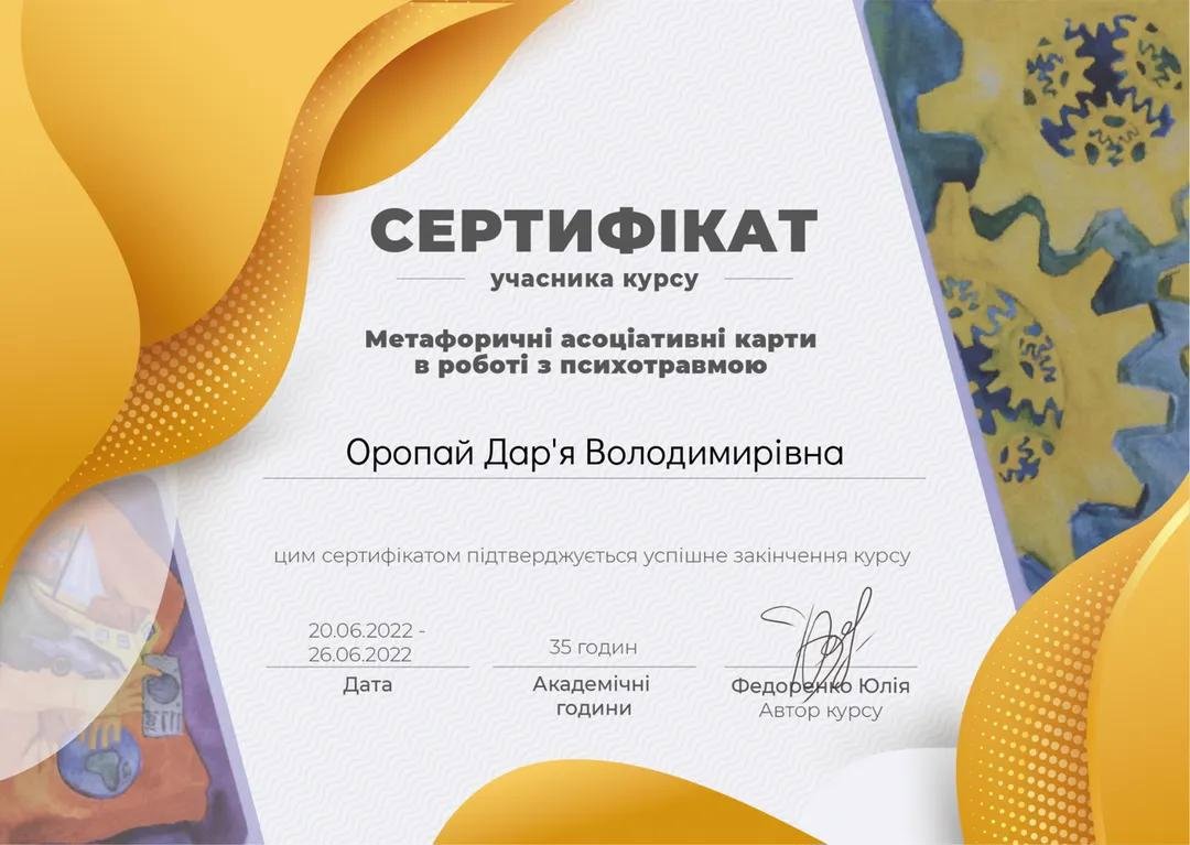 ● "Метафорические ассоциативные карты в работе с психотравмой", 2022, автор курса Федоренко Ю.