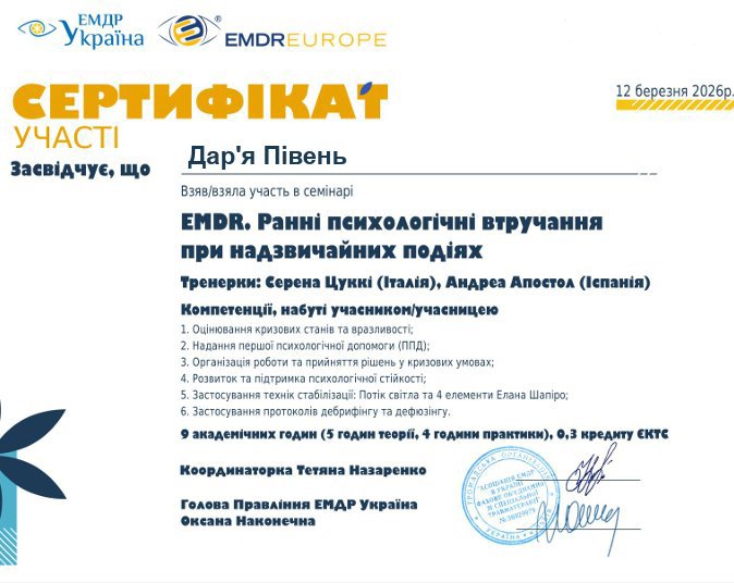 Одна встреча длится 50-60 минут. Частота зависит от Вашего запроса (обычно 1 раз в неделю). Количество сессий мы обсуждаем индивидуально.