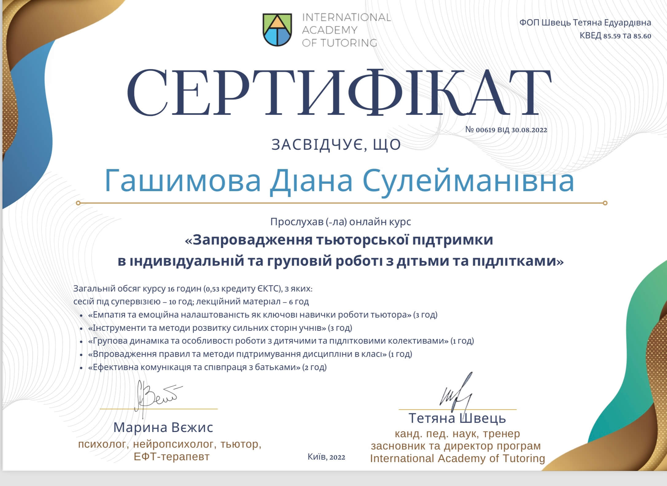 ● ГО «Киевский институт рационально-интуитивной психотерапии «Я»: