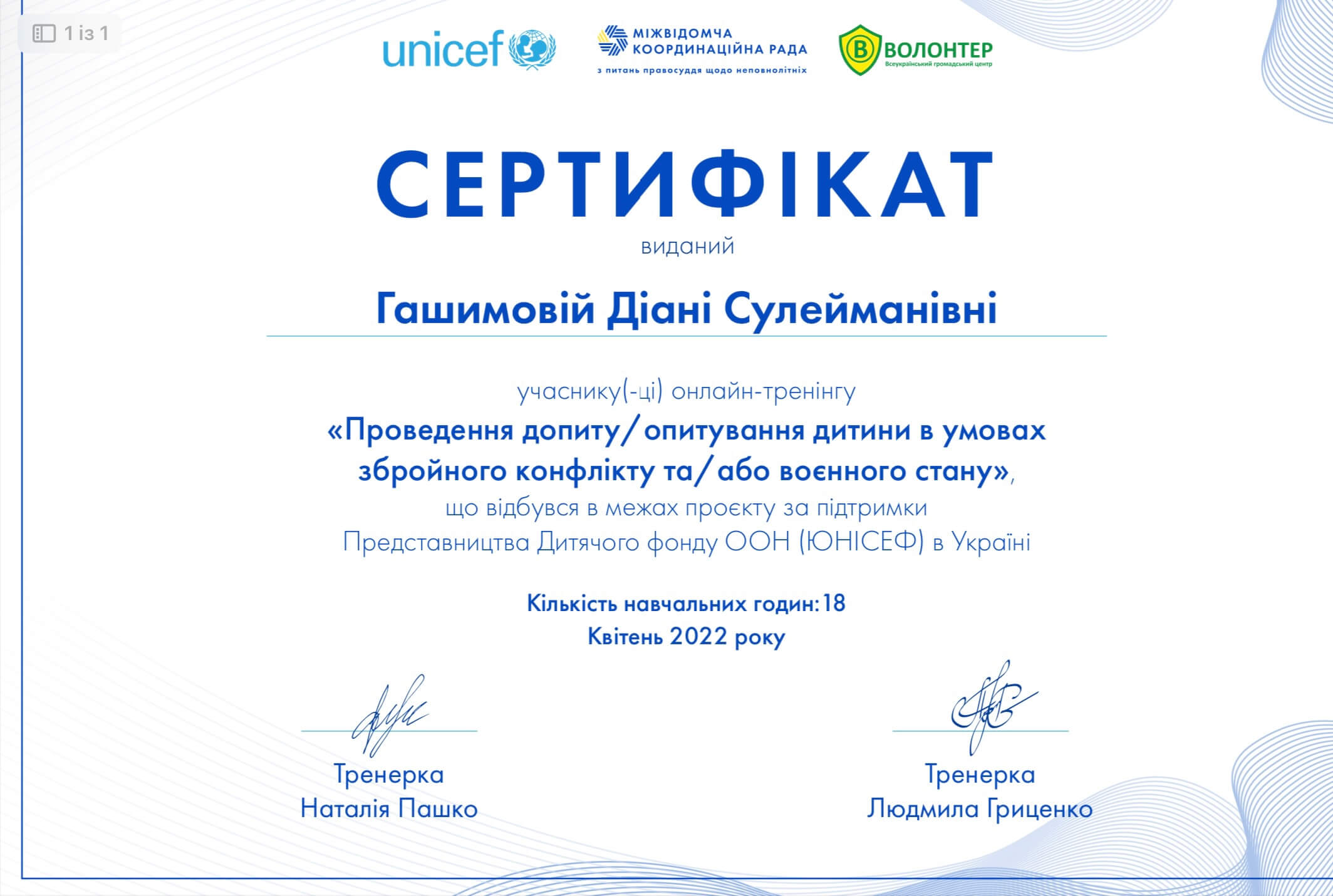● Всеукраинский общественный центр "волонтер" при поддержке Представительства Детского фонда ООН (ЮНИСЕФ):