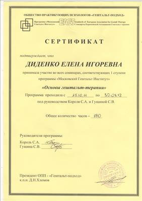 Привет, я - Елена Диденко, практикующий психолог и сертифицированный гештальт-терапевт с опытом работы более 7 лет. Мои клиенты – это люди разного возраста, положения в обществе и семейного статуса. Будь то восьмилетний ребенок, бунтующий подросток, молодая семейная пара или амбициозный бизнесмен, – не важно. Главное, что всех моих клиентов объединяет одно, – желание изменить свою жизнь к лучшему, а, значит, в первую очередь, измениться самому. И в этом на мою помощь можно смело рассчитывать!