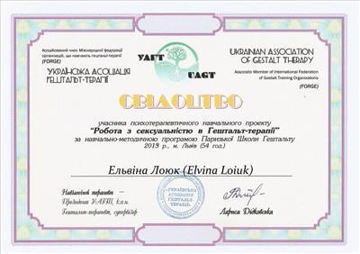 Спеціалізація в КГУ: гештальт підхід в роботі з темами сексуальності, 2019-2021.