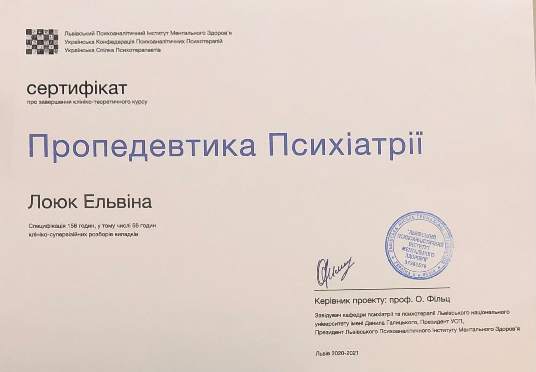 Львівський психоаналітичний інститут ментального здоров‘я, Пропедевтика психіатрії, 2020-2021