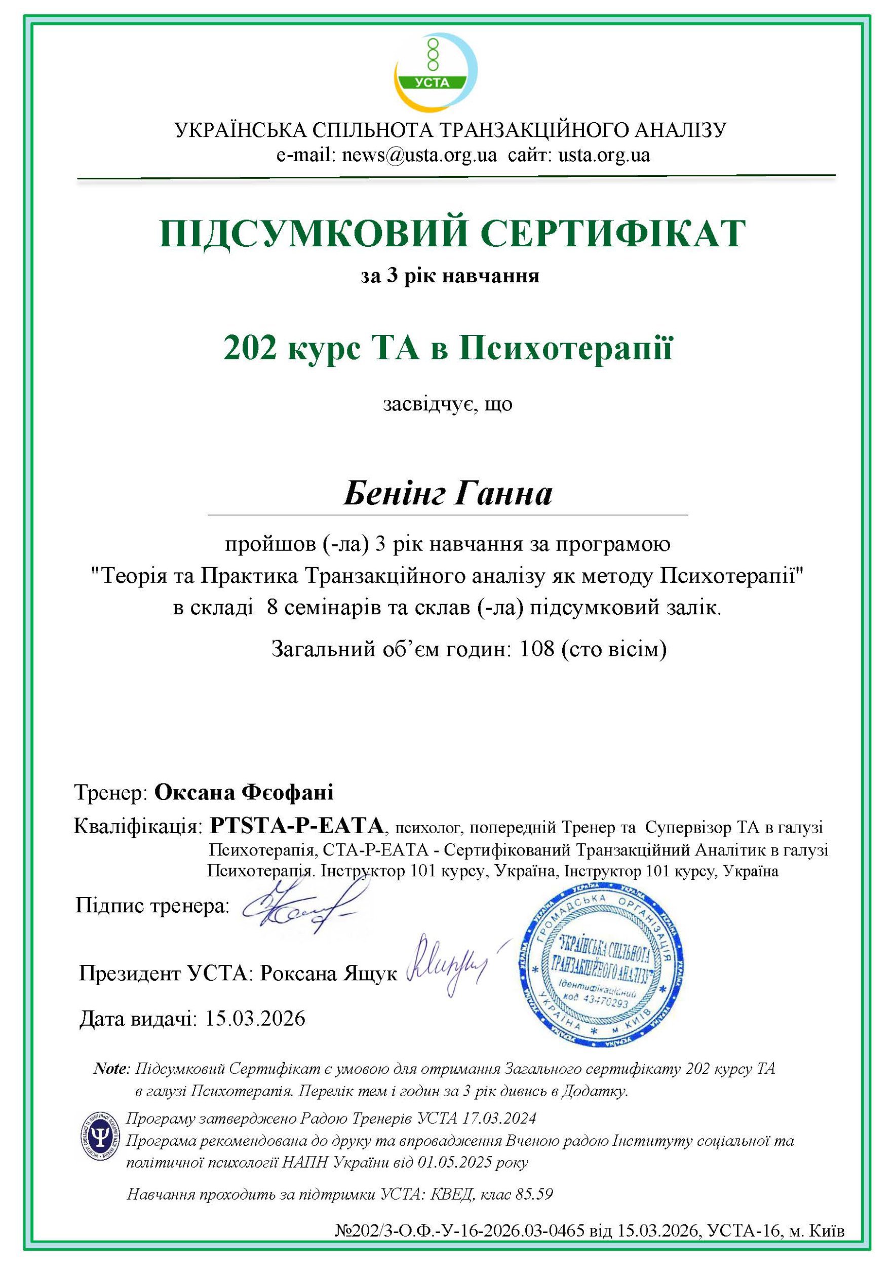 202 курс `ТА в Психотерапії`