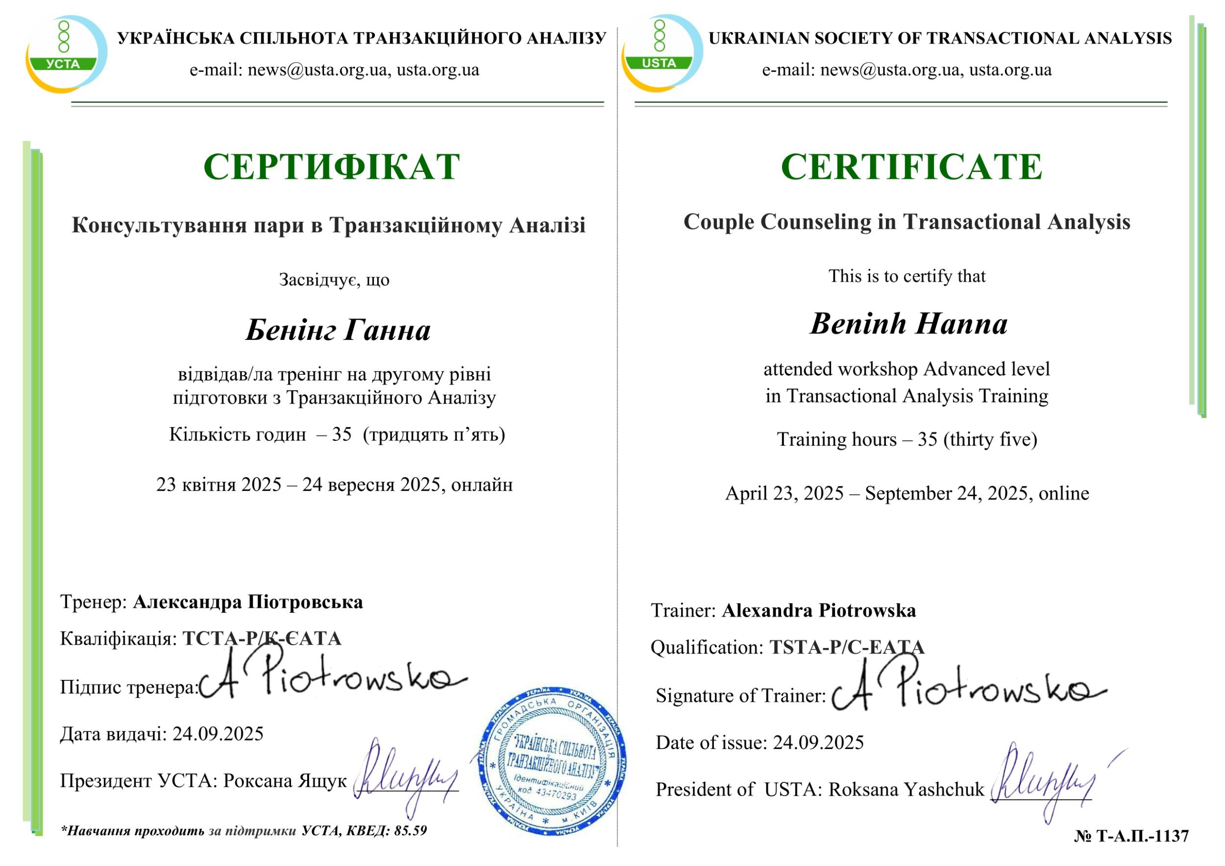 23 квітня 2025 – 24 вересня 2025, К-во часов - 35