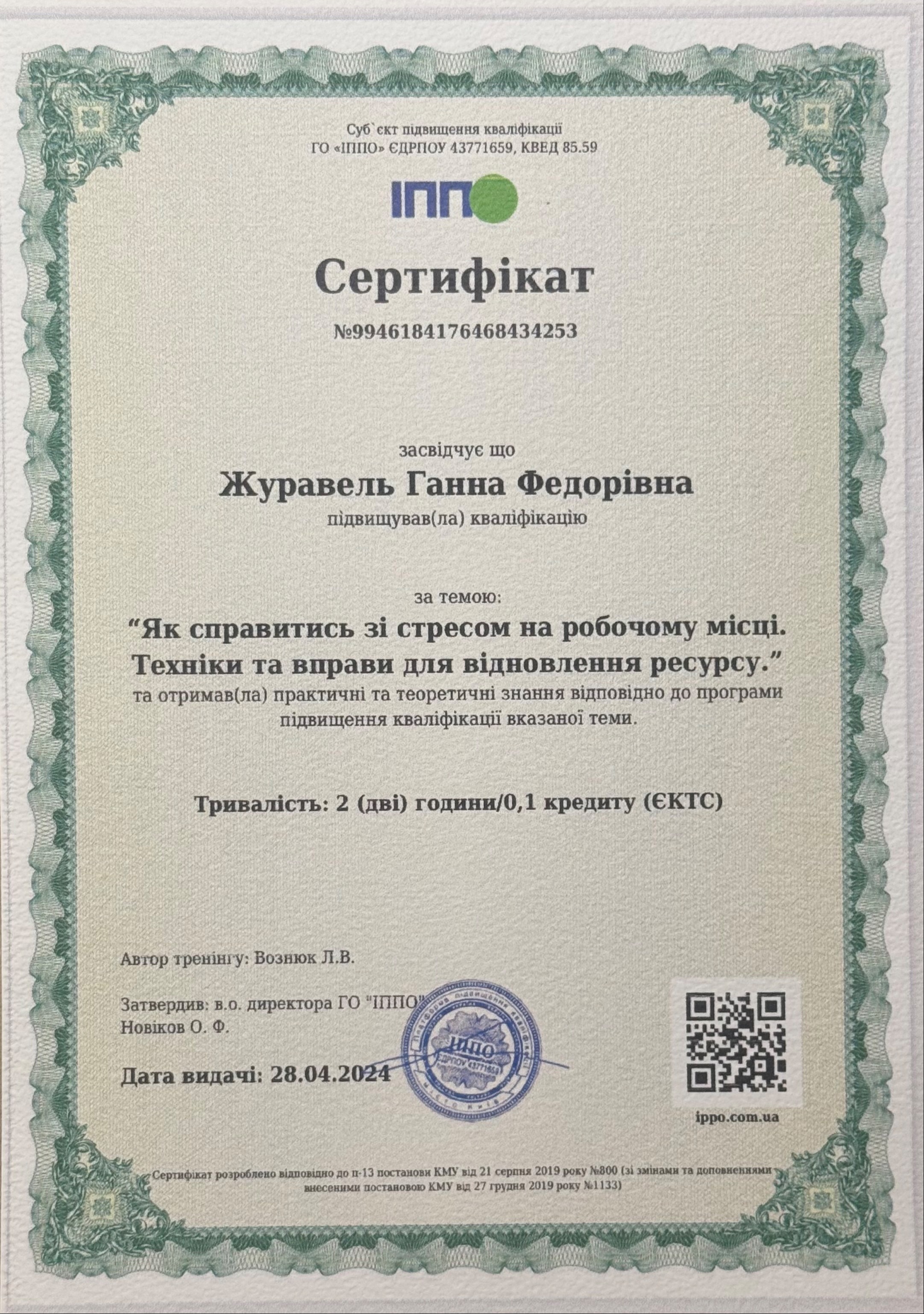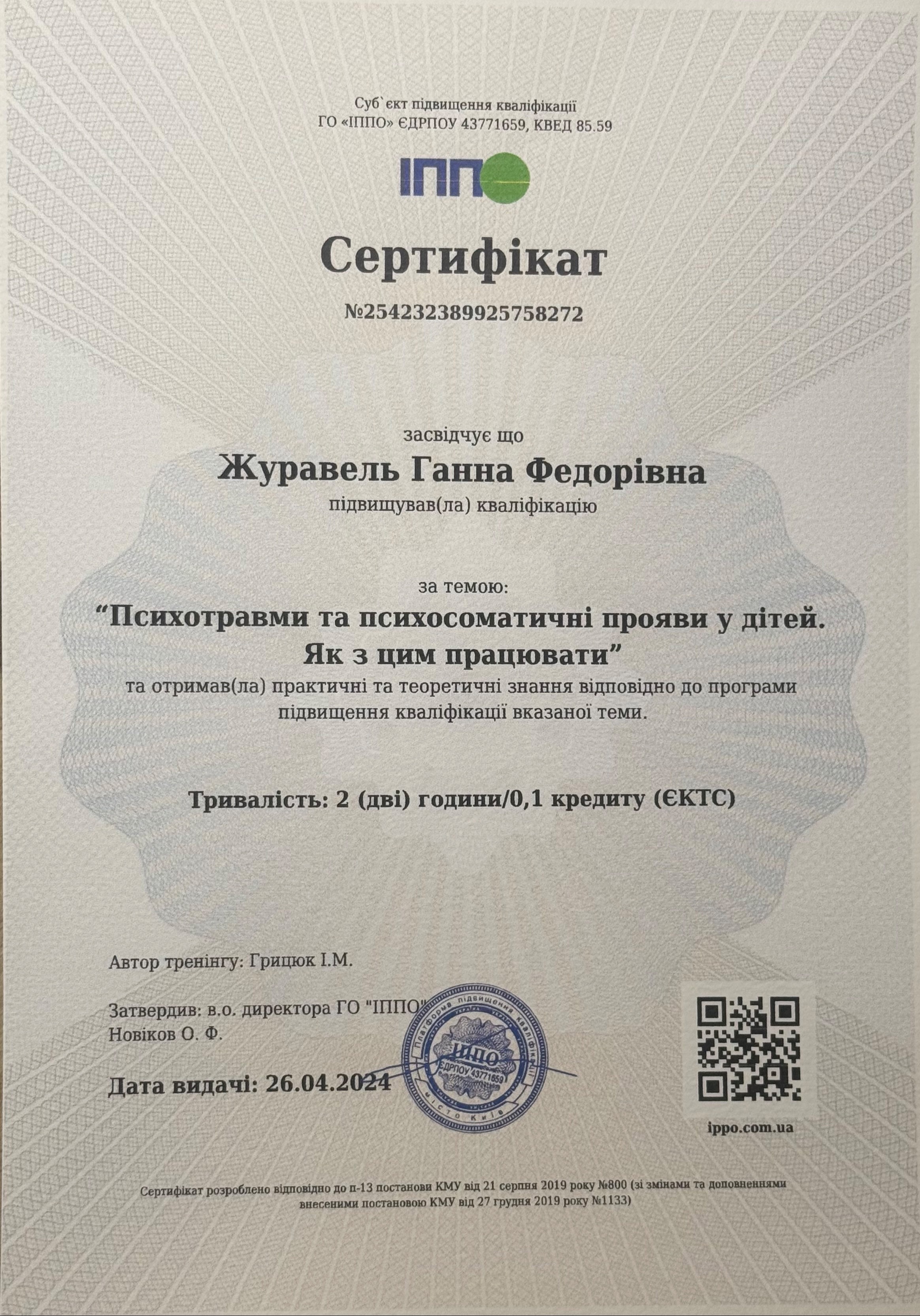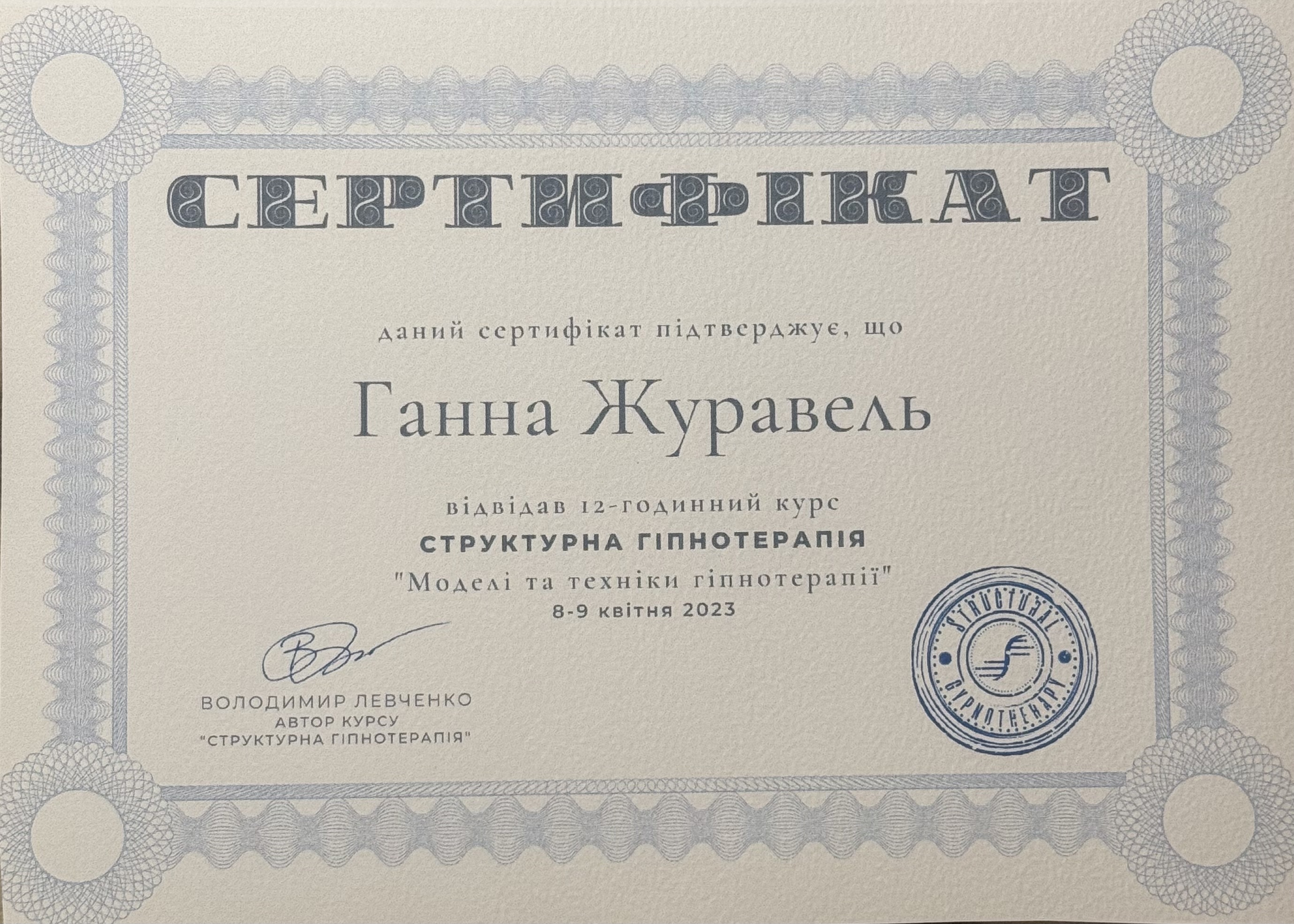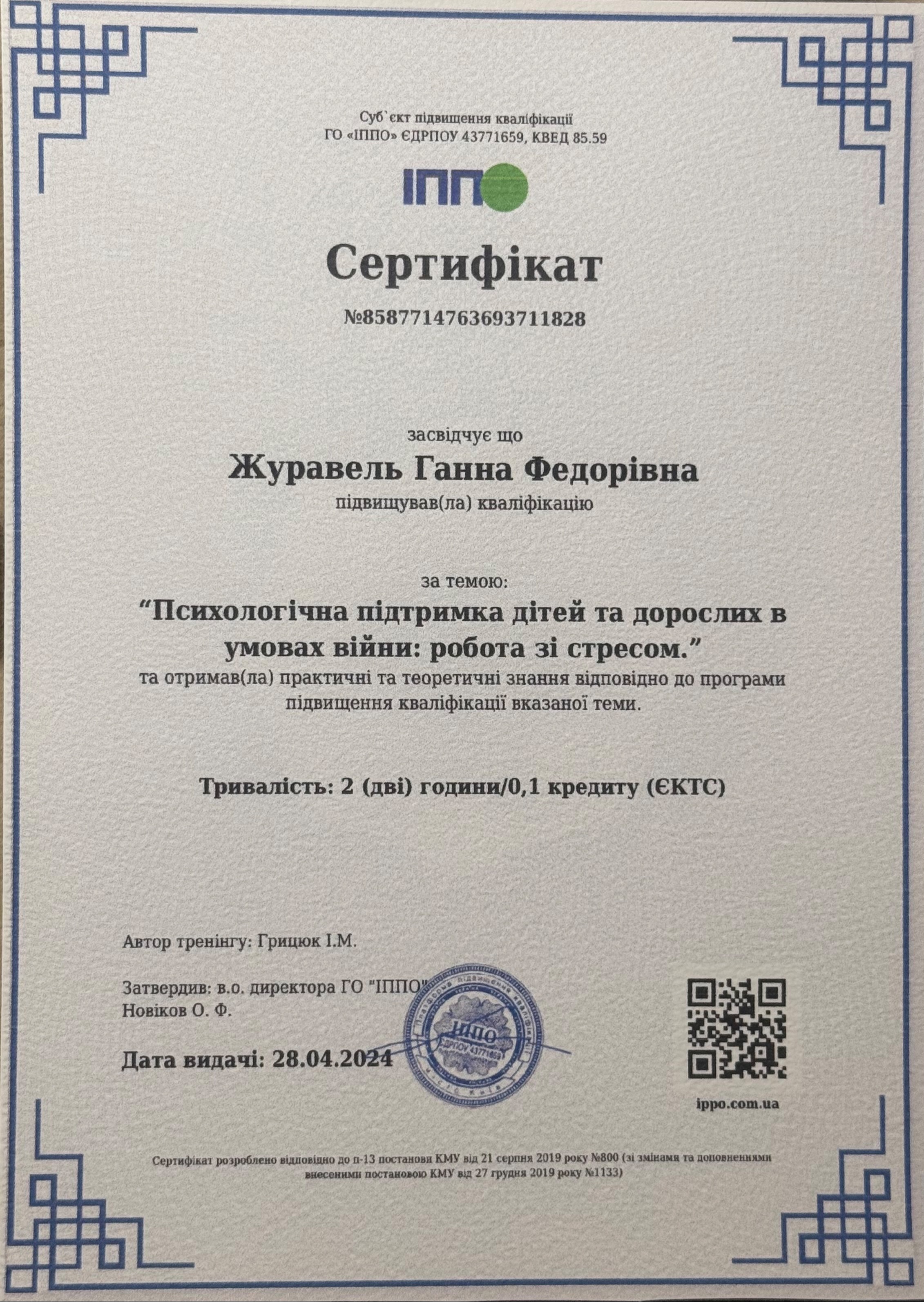 Техники и упражнения для восстановления ресурса.", "Психологическая поддержка детей и взрослых в условиях войны: работа со стрессом.", "Методы арт-терапии для выявления и преодоления тревожности у детей и подростков", СТРУКТУРНАЯ ГИПНОТЕРАПИЯ