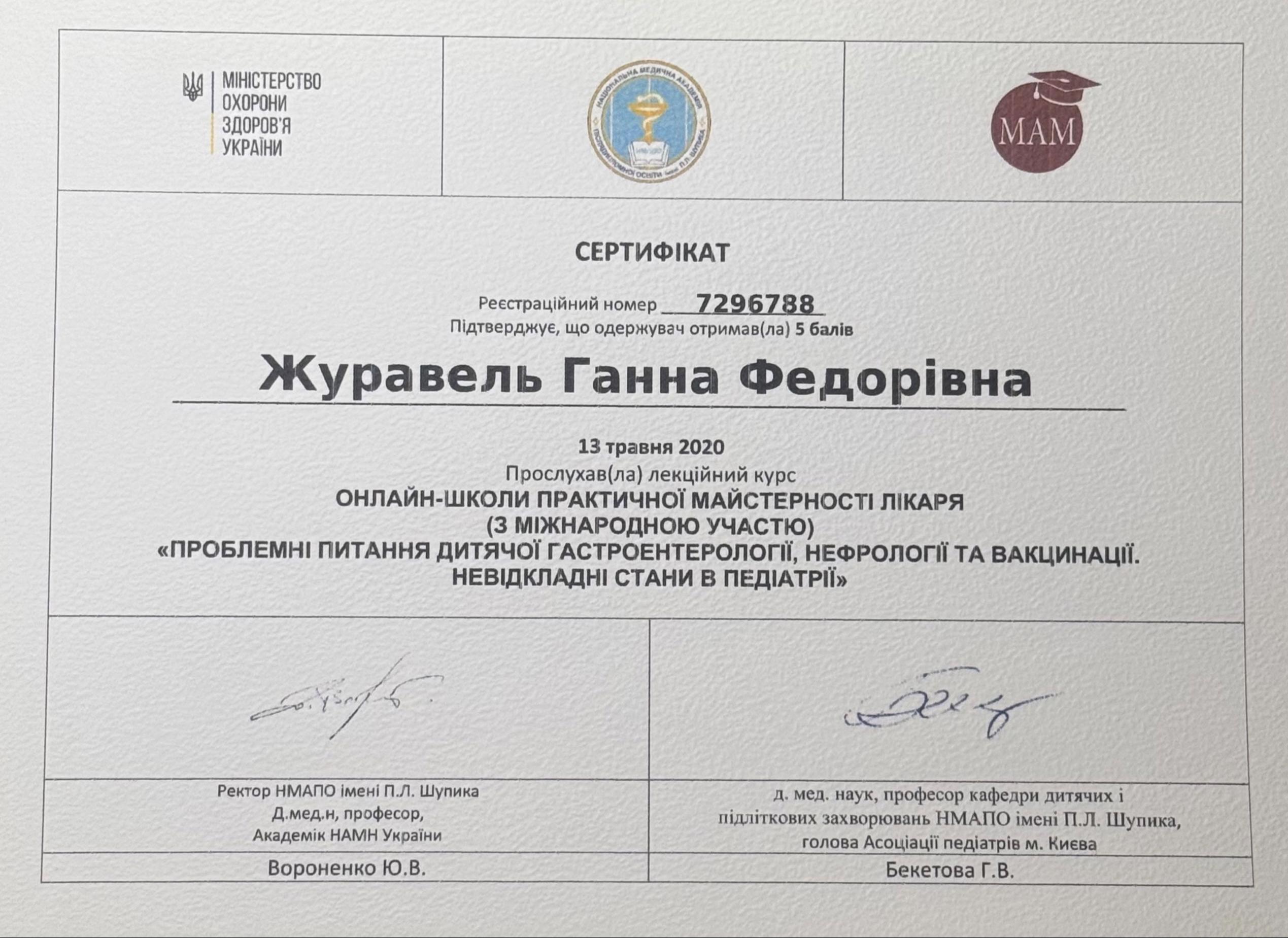 ОНЛАЙН-ШКОЛИ ПРАКТИЧНОЇ МАЙСТЕРНОСТІ ЛІКАРЯ (З МІЖНАРОДНОЮ УЧАСТЮ) «ПРОБЛЕМНІ ПИТАННЯ ДИТЯЧОЇ ГАСТРОЕНТЕРОЛОГІЇ, НЕФРОЛОГІЇ ТА ВАКЦИНАЦІЇ. НЕВІДКЛАДНІ СТАНИ В ПЕДІАТРІЇ»