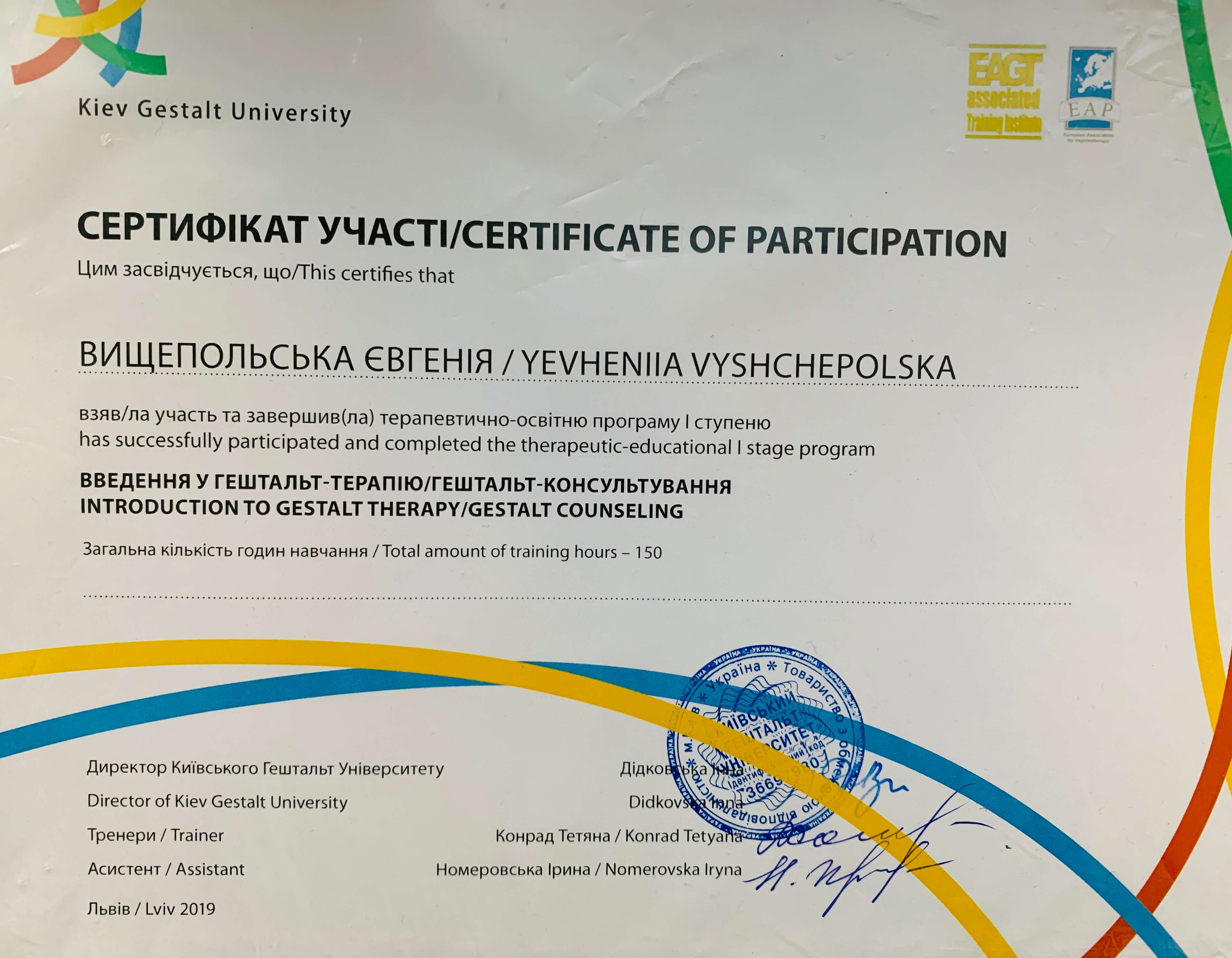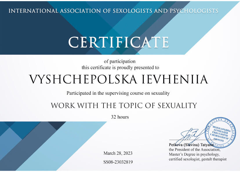 В профессию я пришла через заинтересованность собой, своими психологическими процессами, желанием исследовать синергию тела и психики. Я начала это уникальное путешествие познания с себя, а сейчас я помогаю другим на этом пути.
