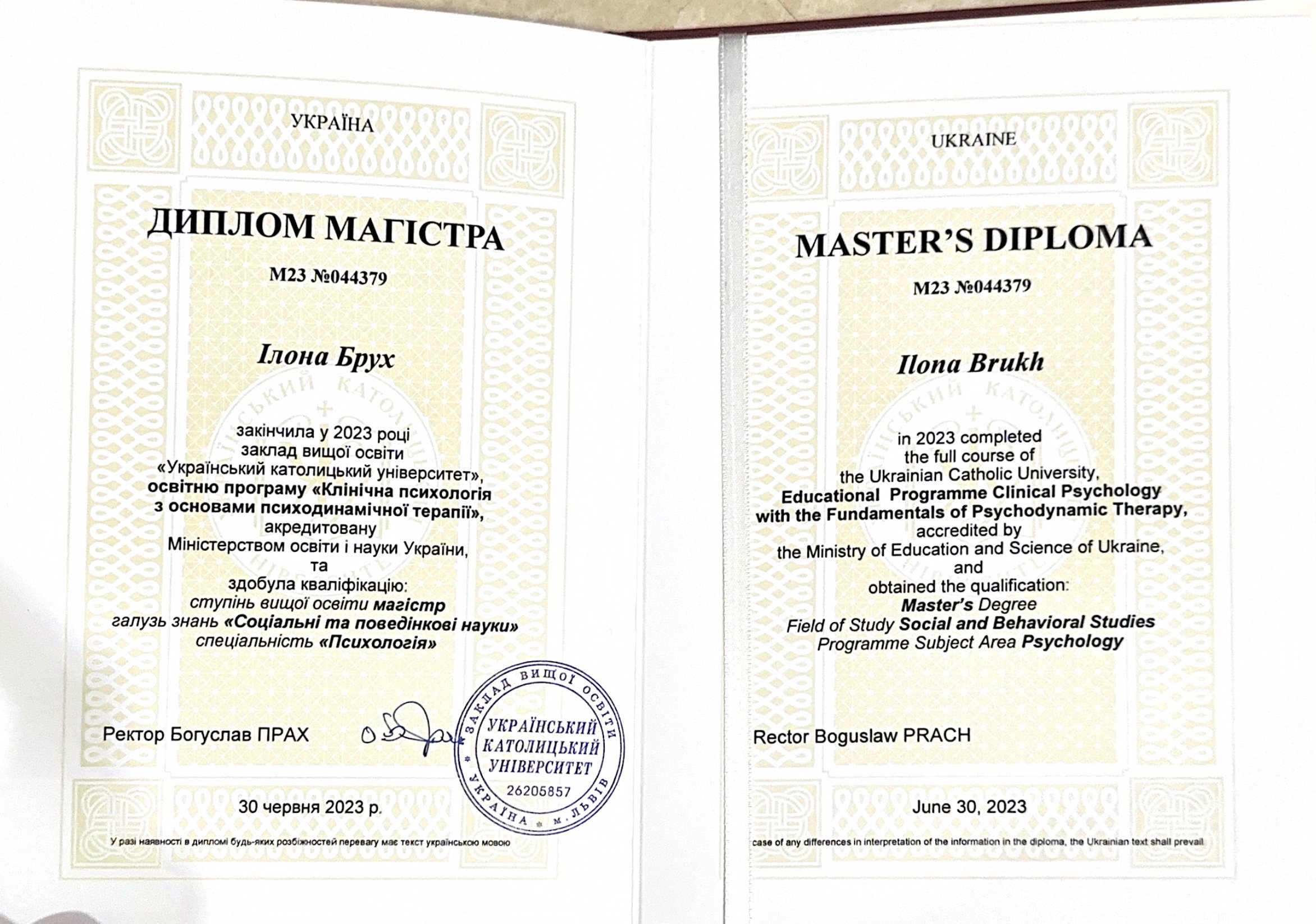 Клинический психолог-консультант (2017-2021, 2021-2023, УКУ)