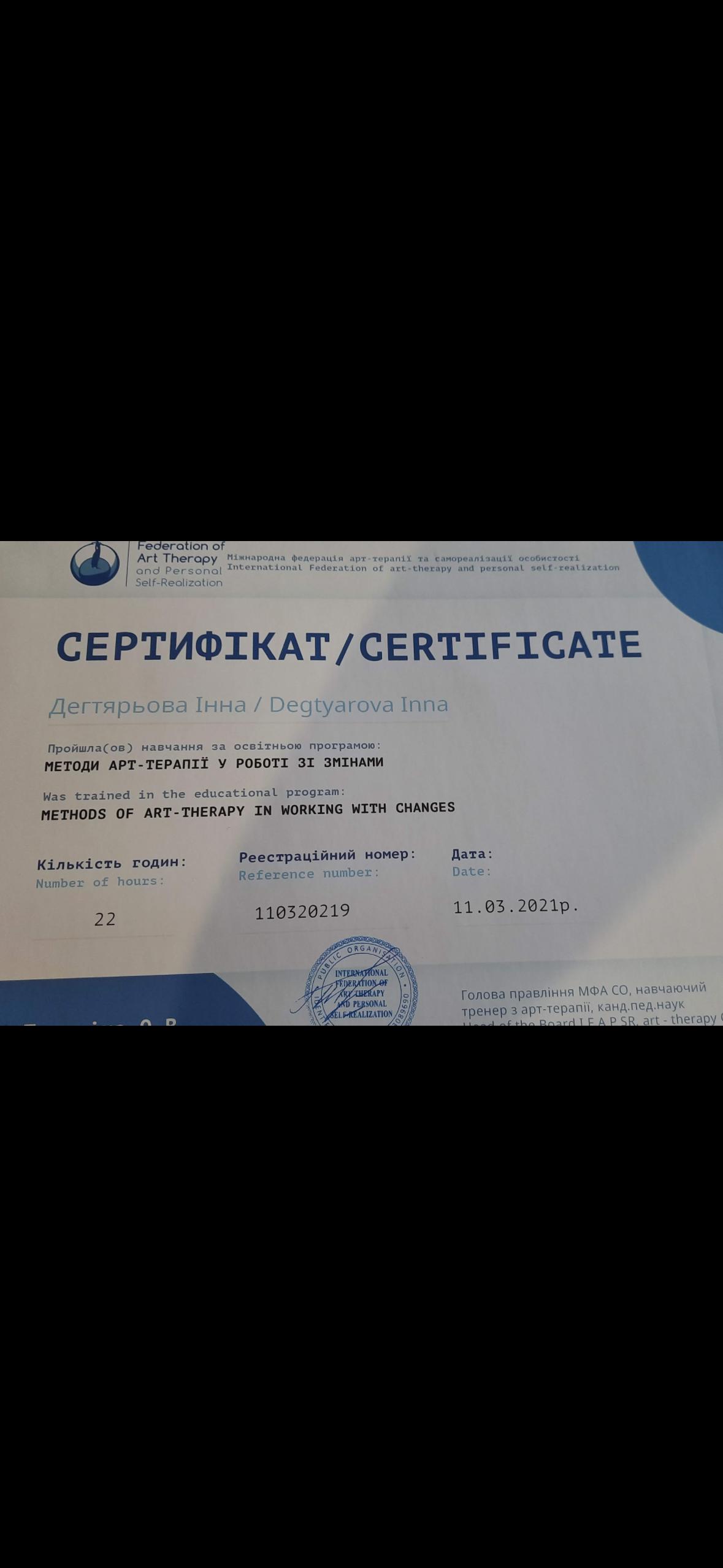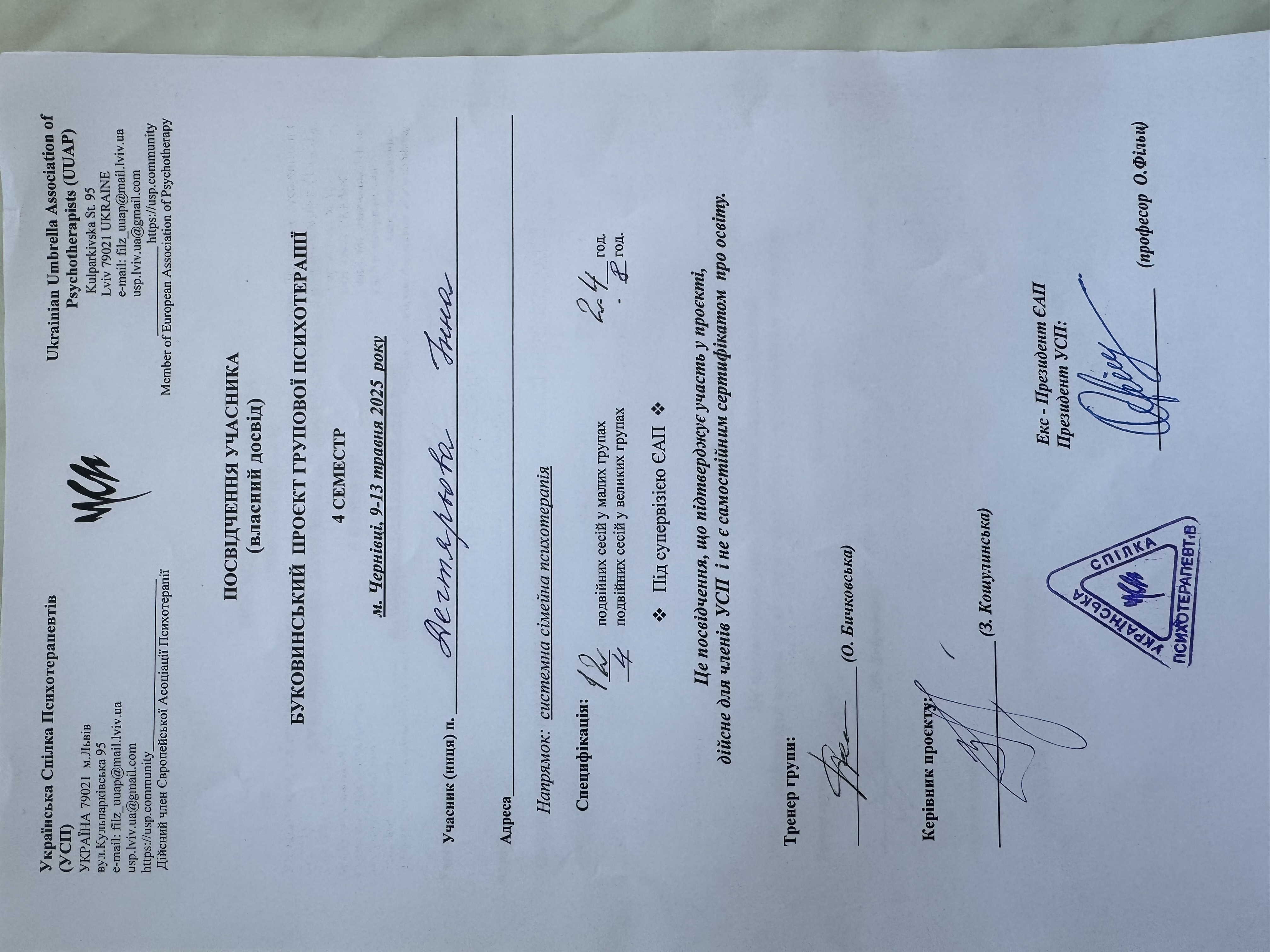 2023- и по сегодняшний день Украинский психотерапевтический университет специализация психотерапевт по методу системной семейной психотерапии