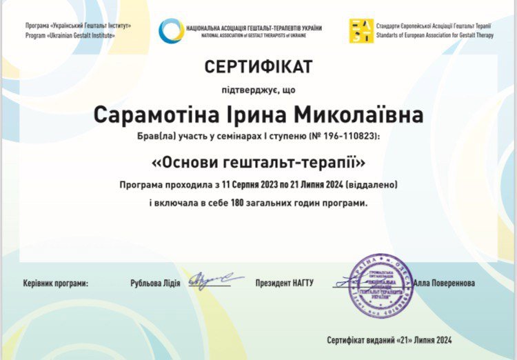 В работе использую методы психологического консультирования, арт-терапии и гештальт-подход.