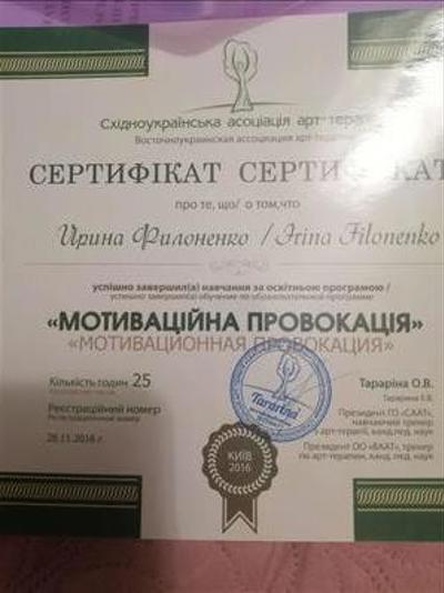 Криворожский педагогический университет.Оконченое высшее образование.Более 500 часов работы в психотерапии