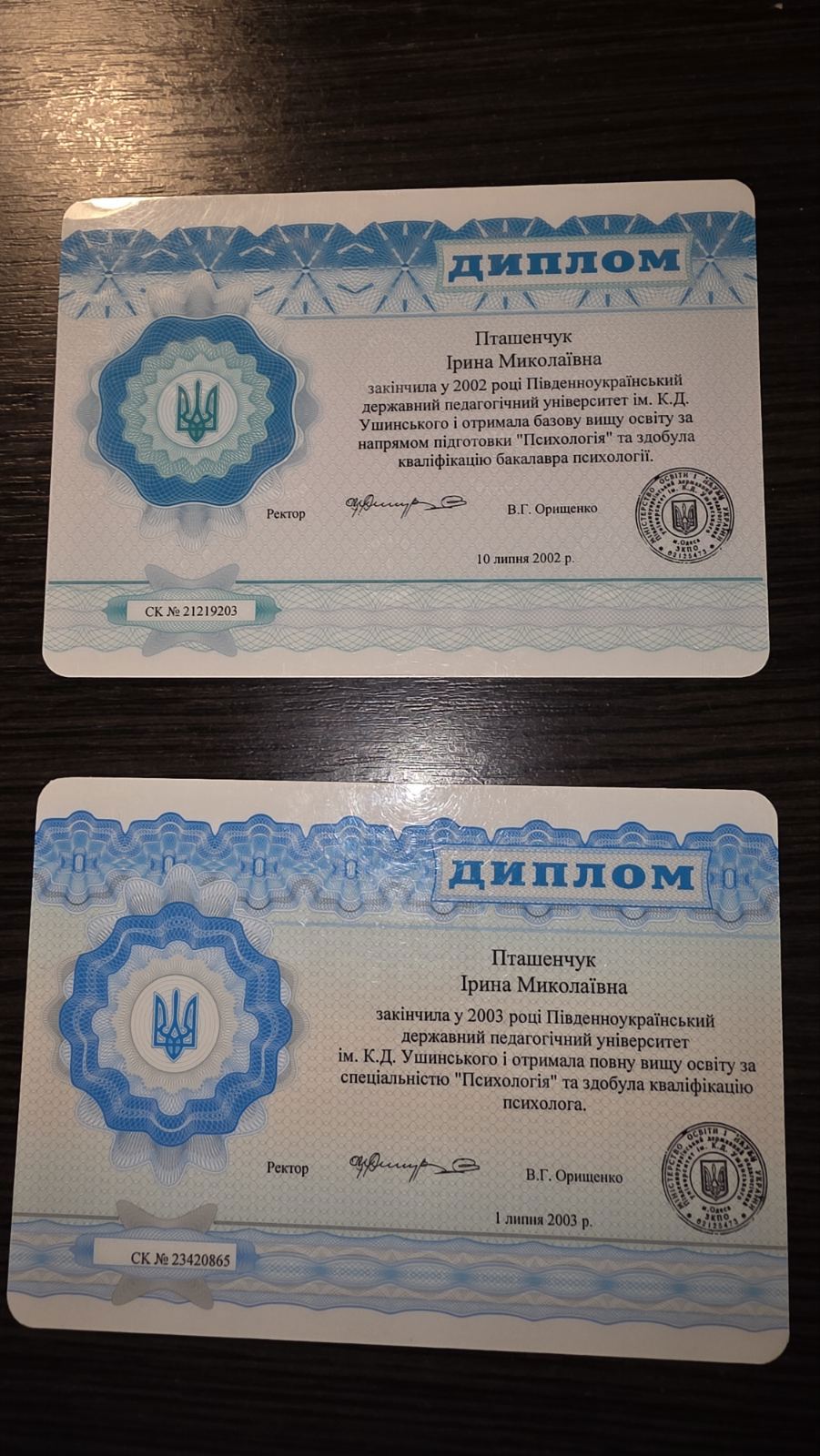 Южноукраинский Государственный Педагогический Университет им. Ушинская специальность "Психолог".