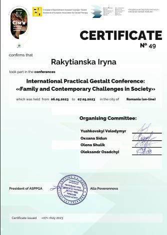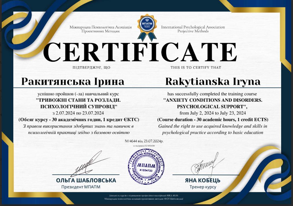 Киевский институт современной психологии и психотерапии, магистр психологии (2019-2021 г.)
