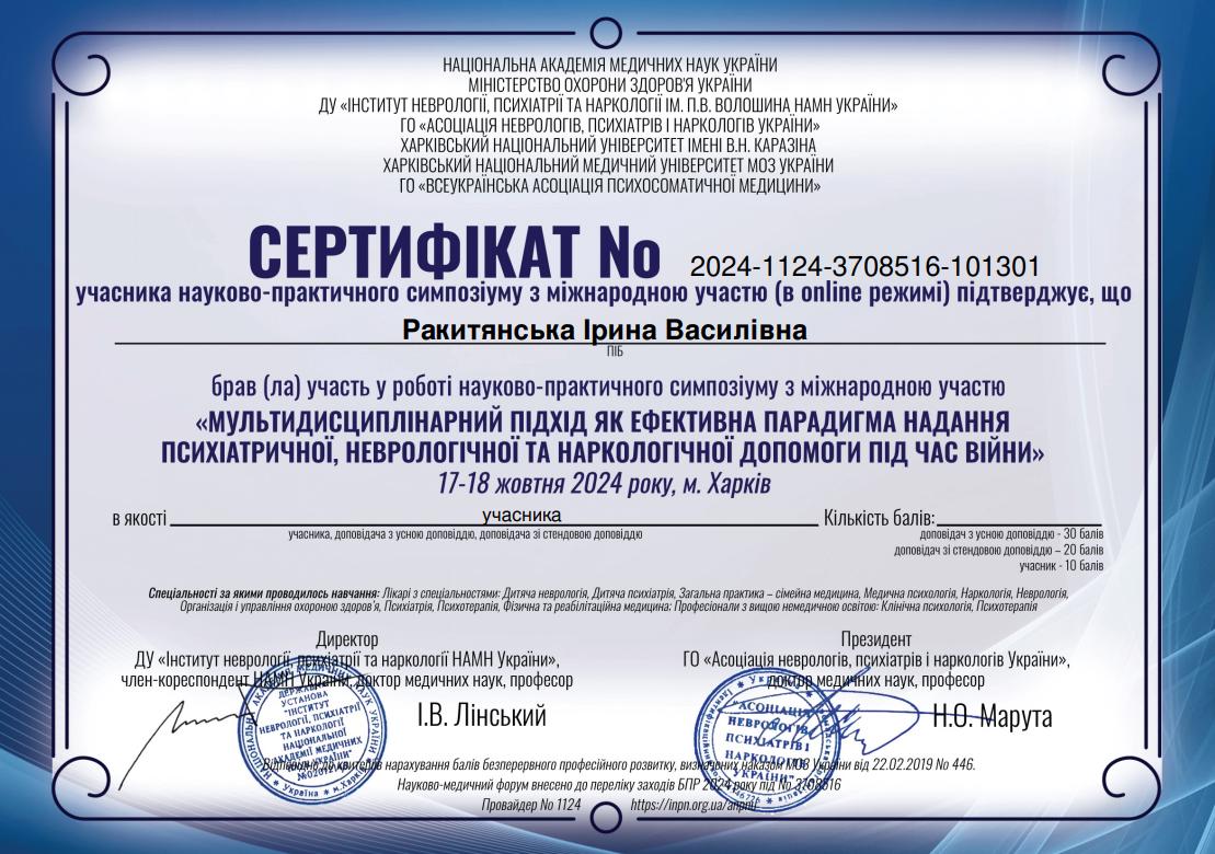 Симпозиум Мультидисциплинарный подход как эффективная парадигма предоставления психиатрической, неврологической и наркологической помощи во время войны 17-18.10.2024