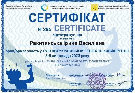Национальная ассоциация гештальт терапевтов Украины (с 2018 года по настоящее время)