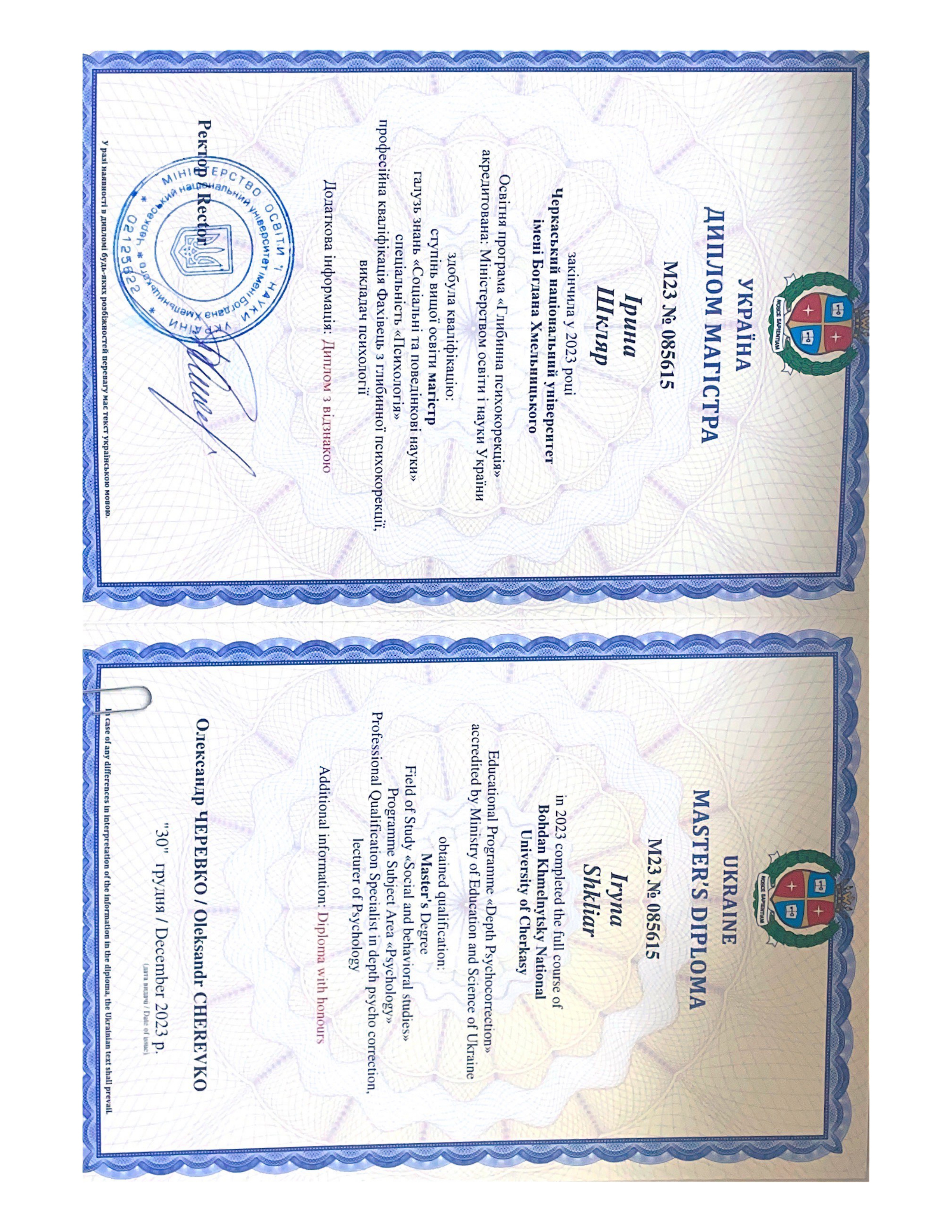 Магистратура "Специалист по глубинной психокоррекции" Черкасский национальный университет имени Богдана Хмельницкого