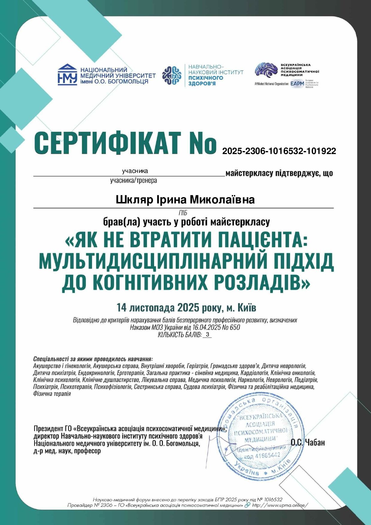 ЯК НЕ ВТРАТИТИ ПАЦІЄНТА: МУЛЬТИДИСЦИПЛІНАРНИЙ ПІДХІД ДО КОГНІТИВНИХ РОЗЛАДІВ