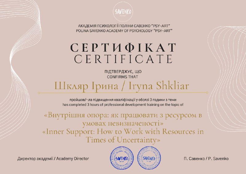 АКАДЕМІЯ ПСИХОЛОГІЇ ПОЛІНИ САВЕНКО "PSY-ART"