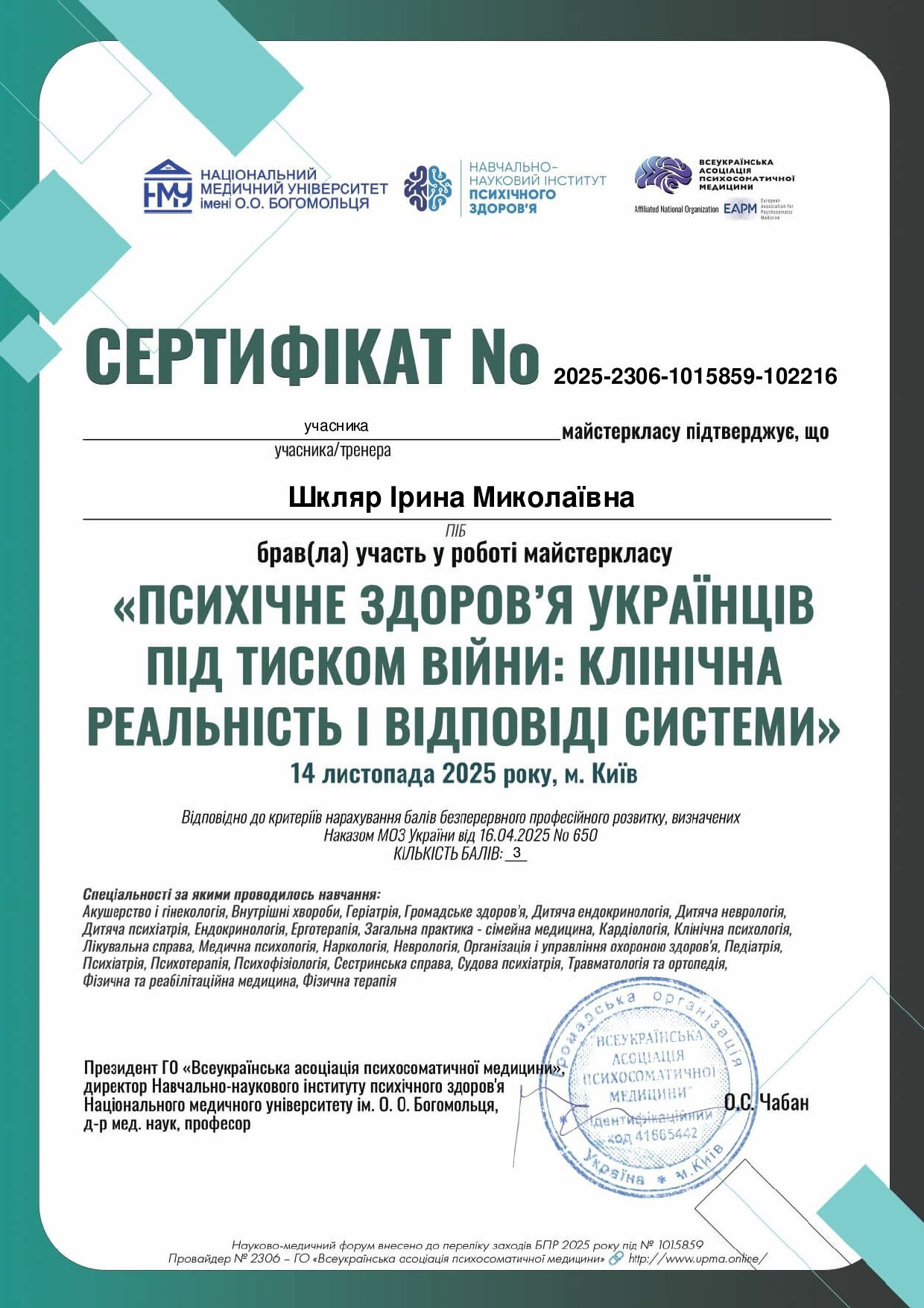 науково-практична конференція з міжнародною участю «ПСИХОСОМАТИЧНА МЕДИЦИНА: НАУКА ТА ПРАКТИКА»