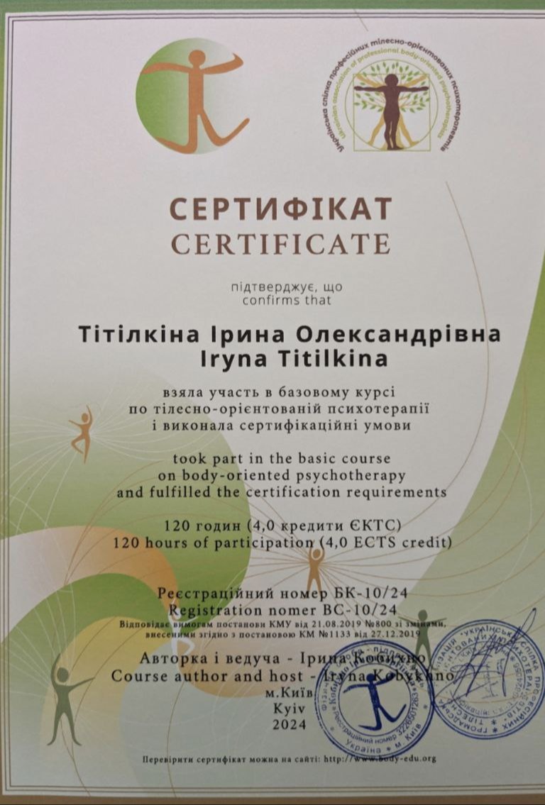 Привет! Меня зовут Ирина, я магистр клинической психологии и специалист по телесно-ориентированной психотерапии в обучении.