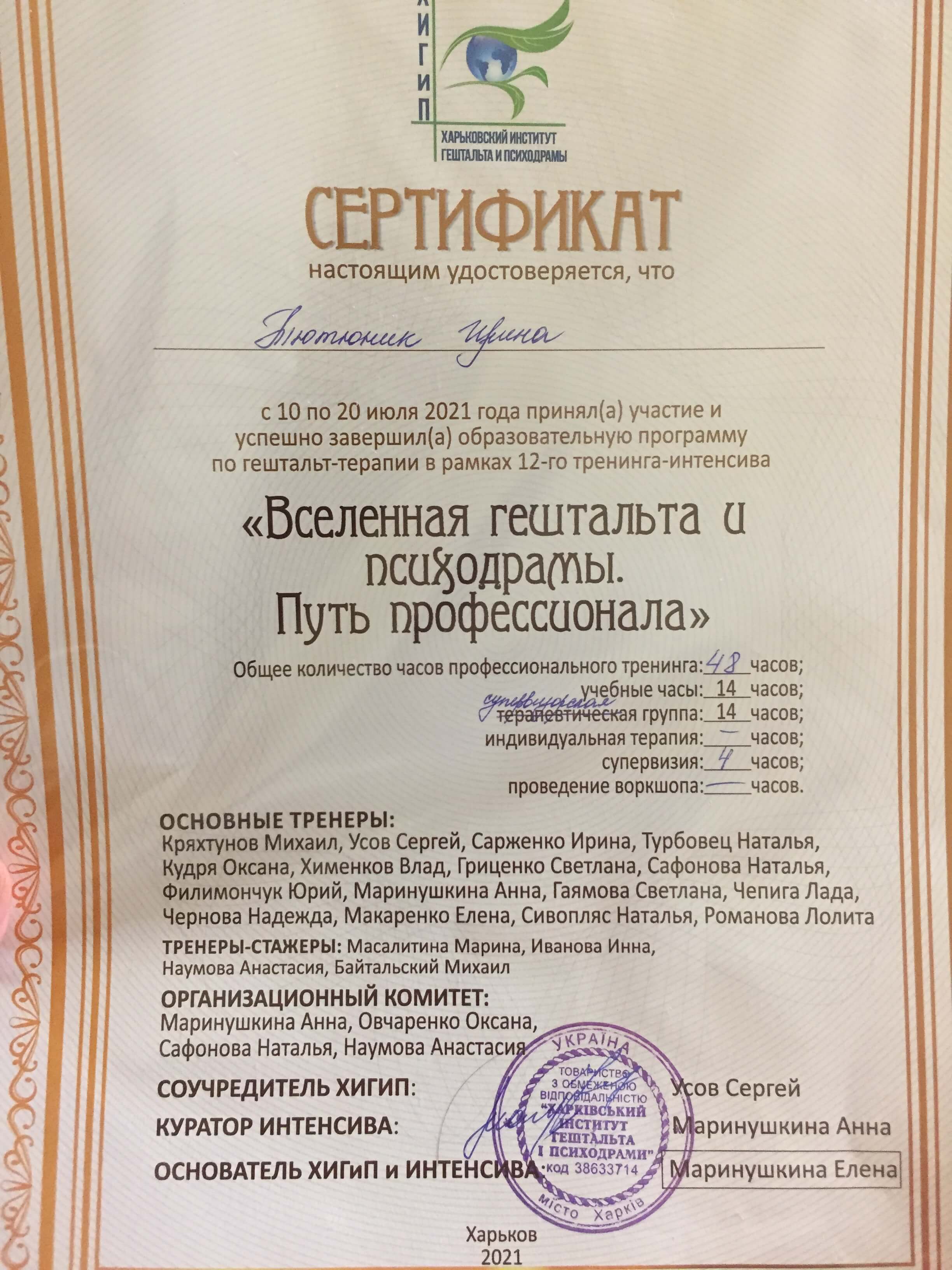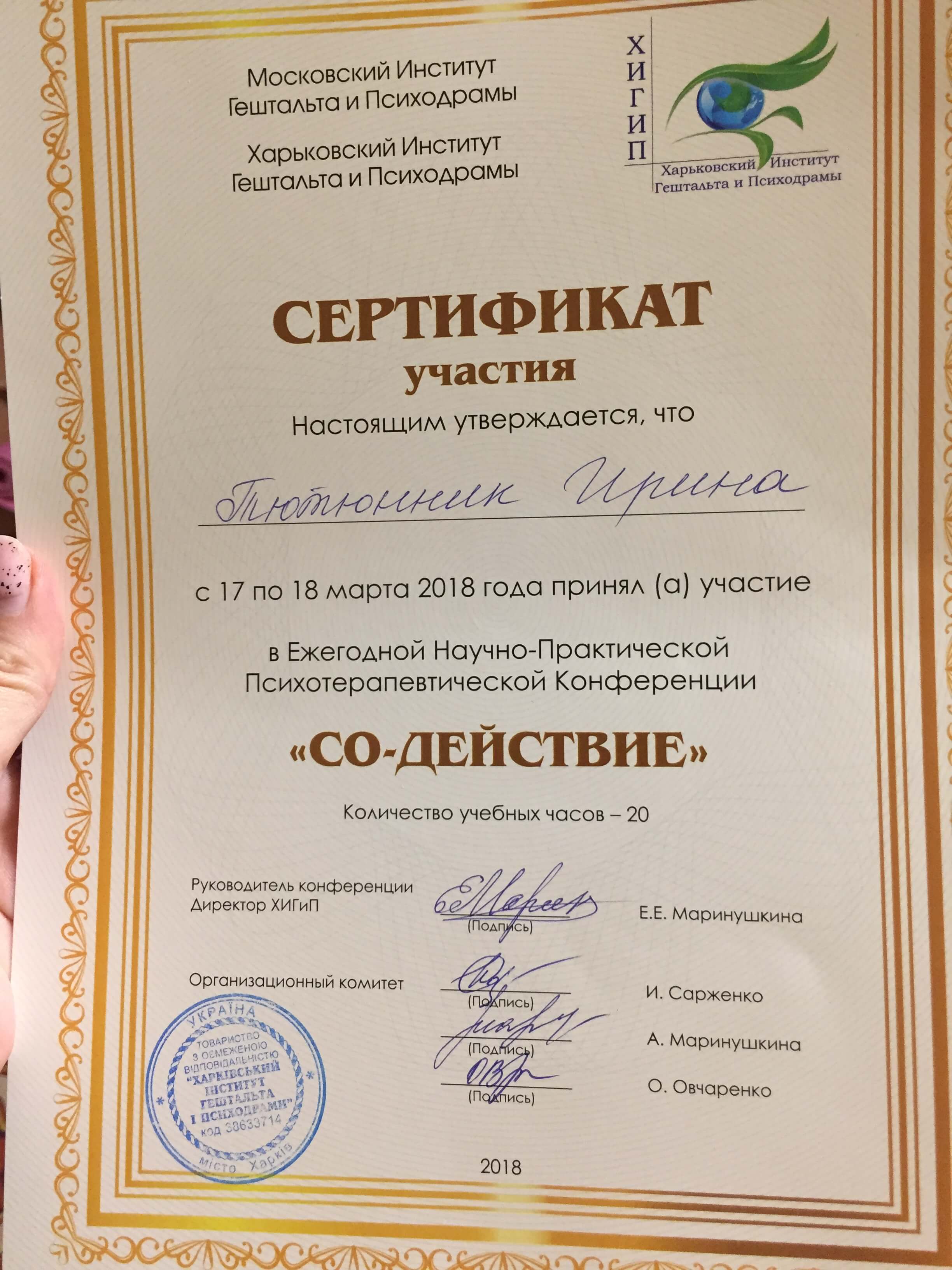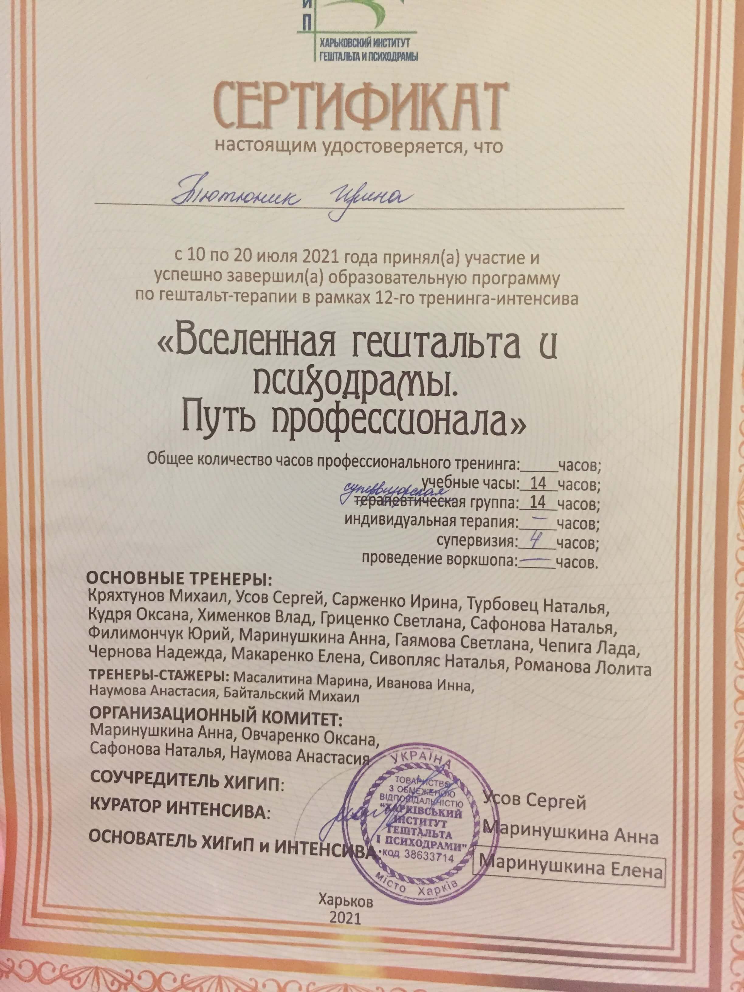 Сертификаты: