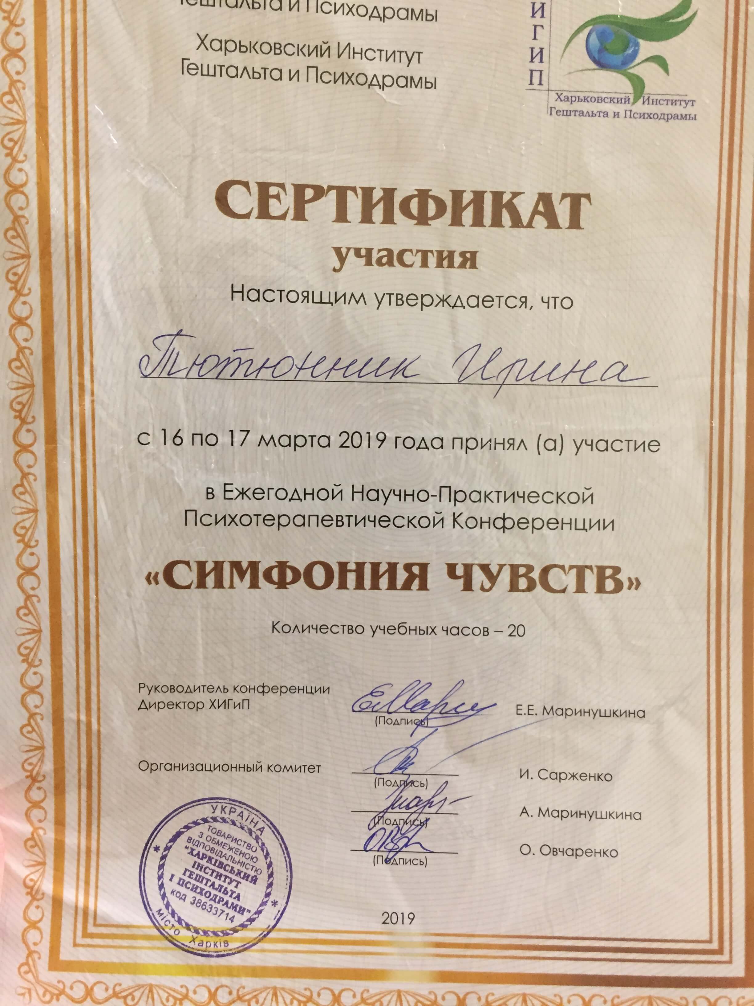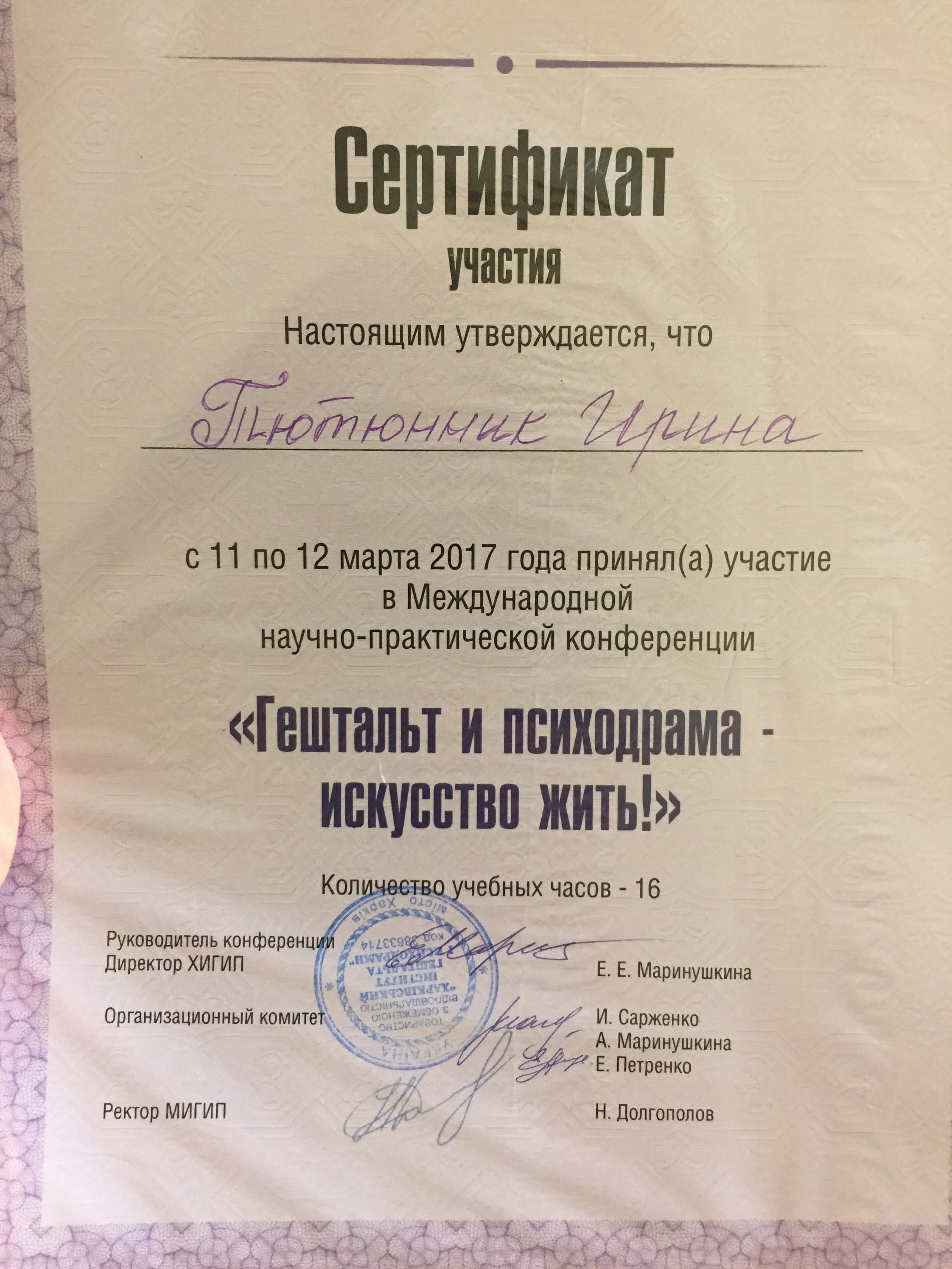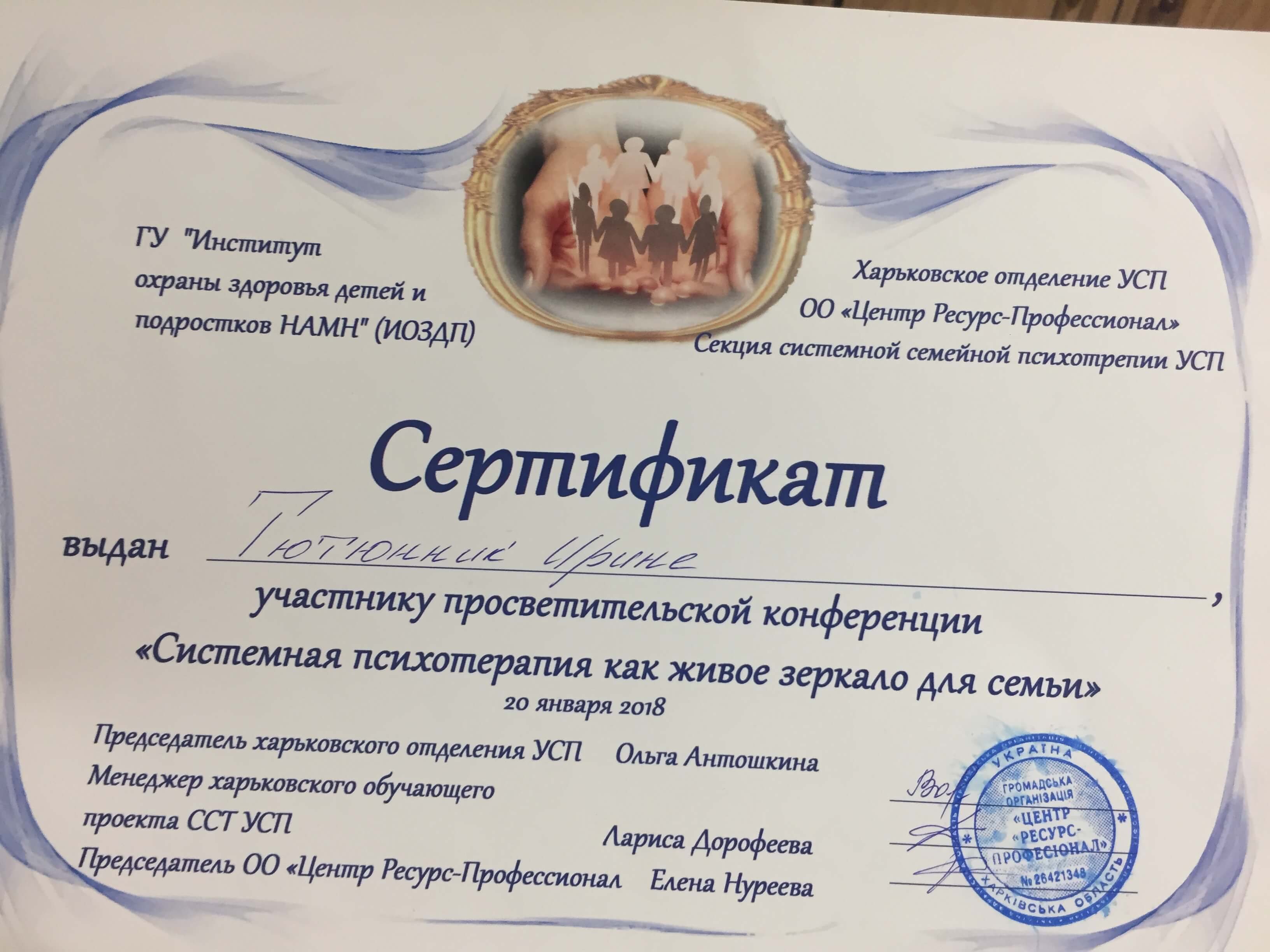 Сертификаты: