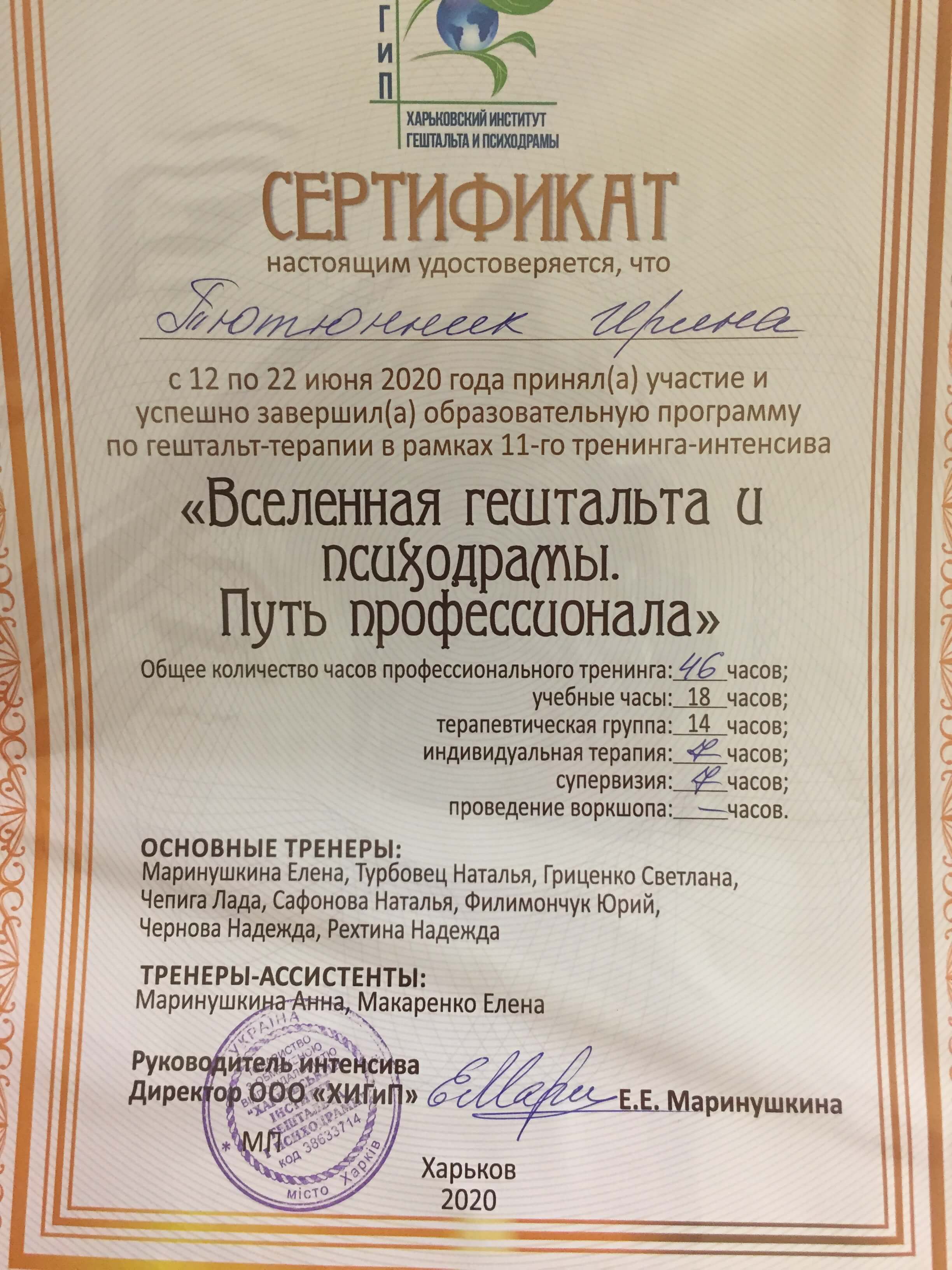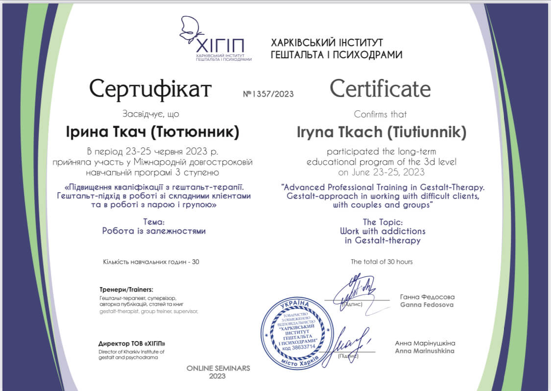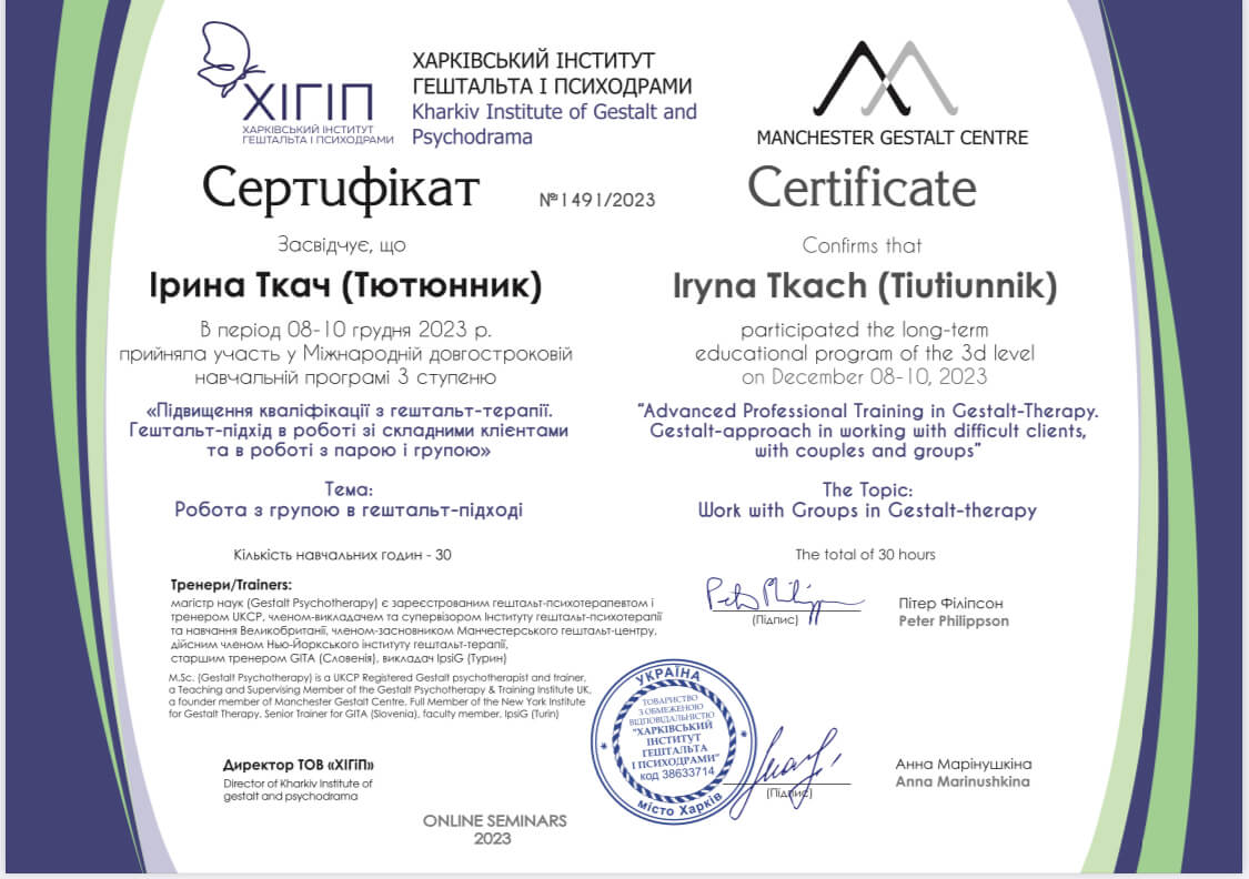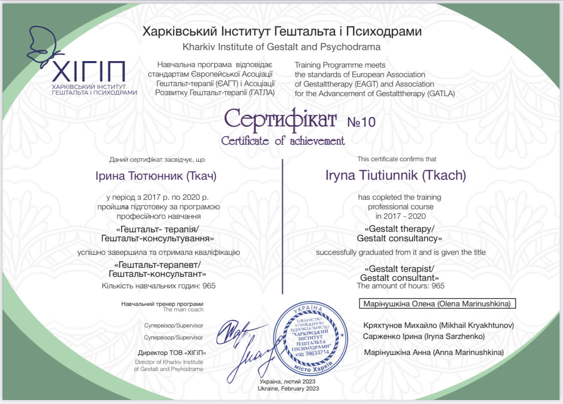 В настоящее время продолжаю учиться по специальностям «Работа с экзистенцией»,