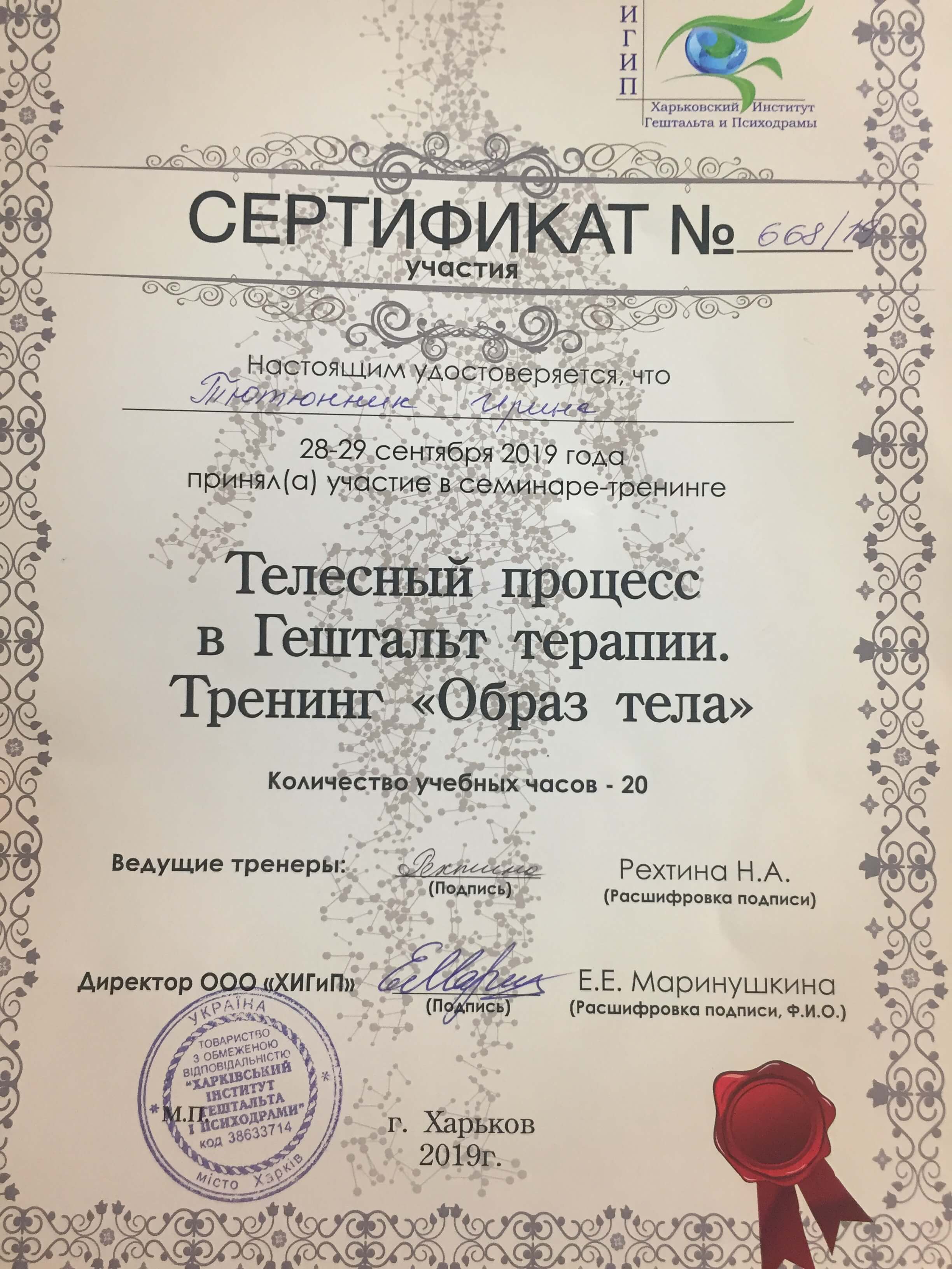 Специализация «Работа с телесностью в Гештальт подходе»