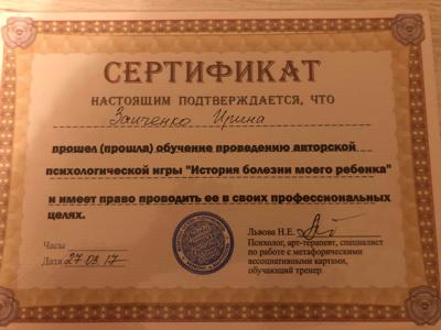 «Психологическое консультирование в гештальтподходе» Сертификат на 152 часа.