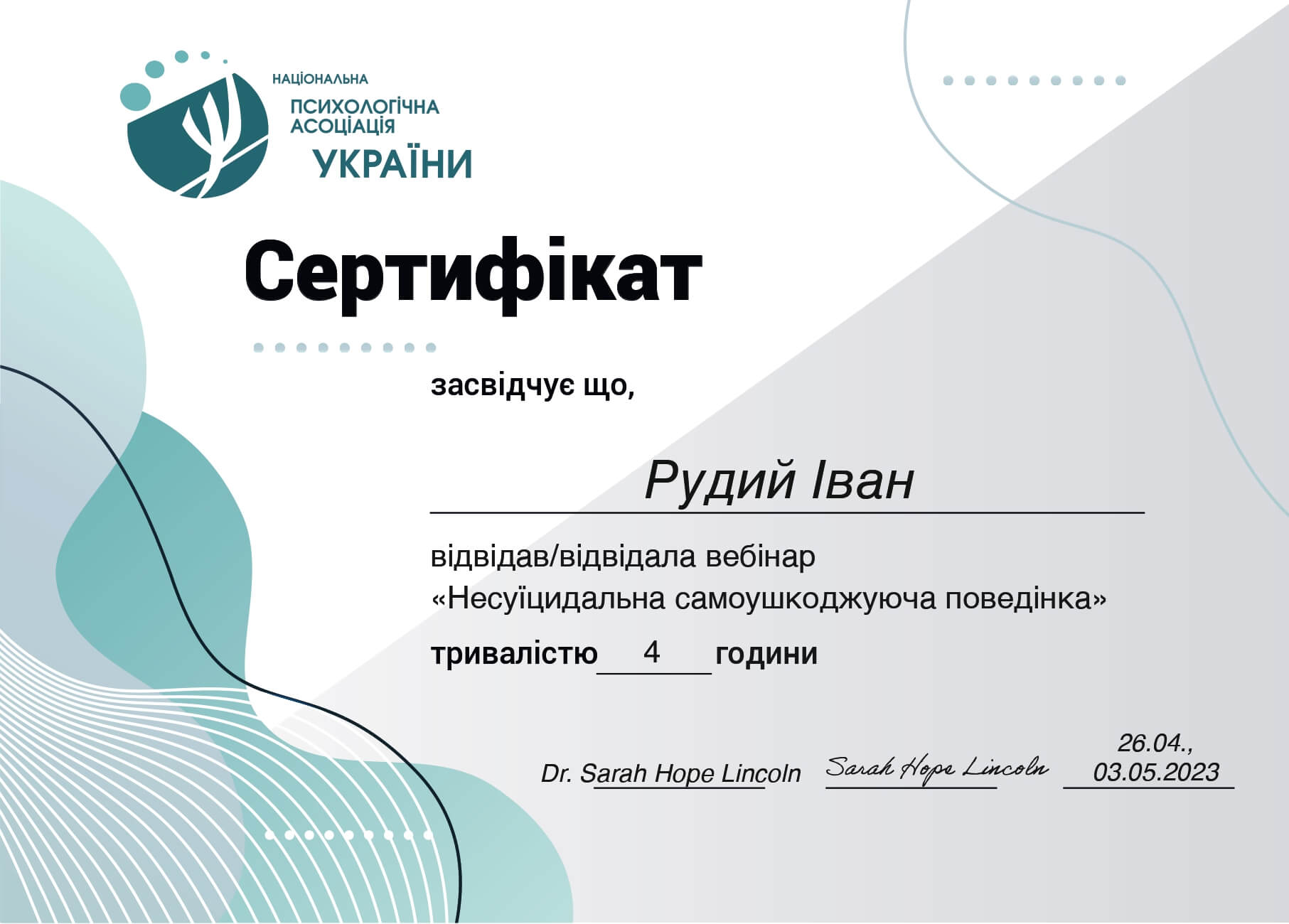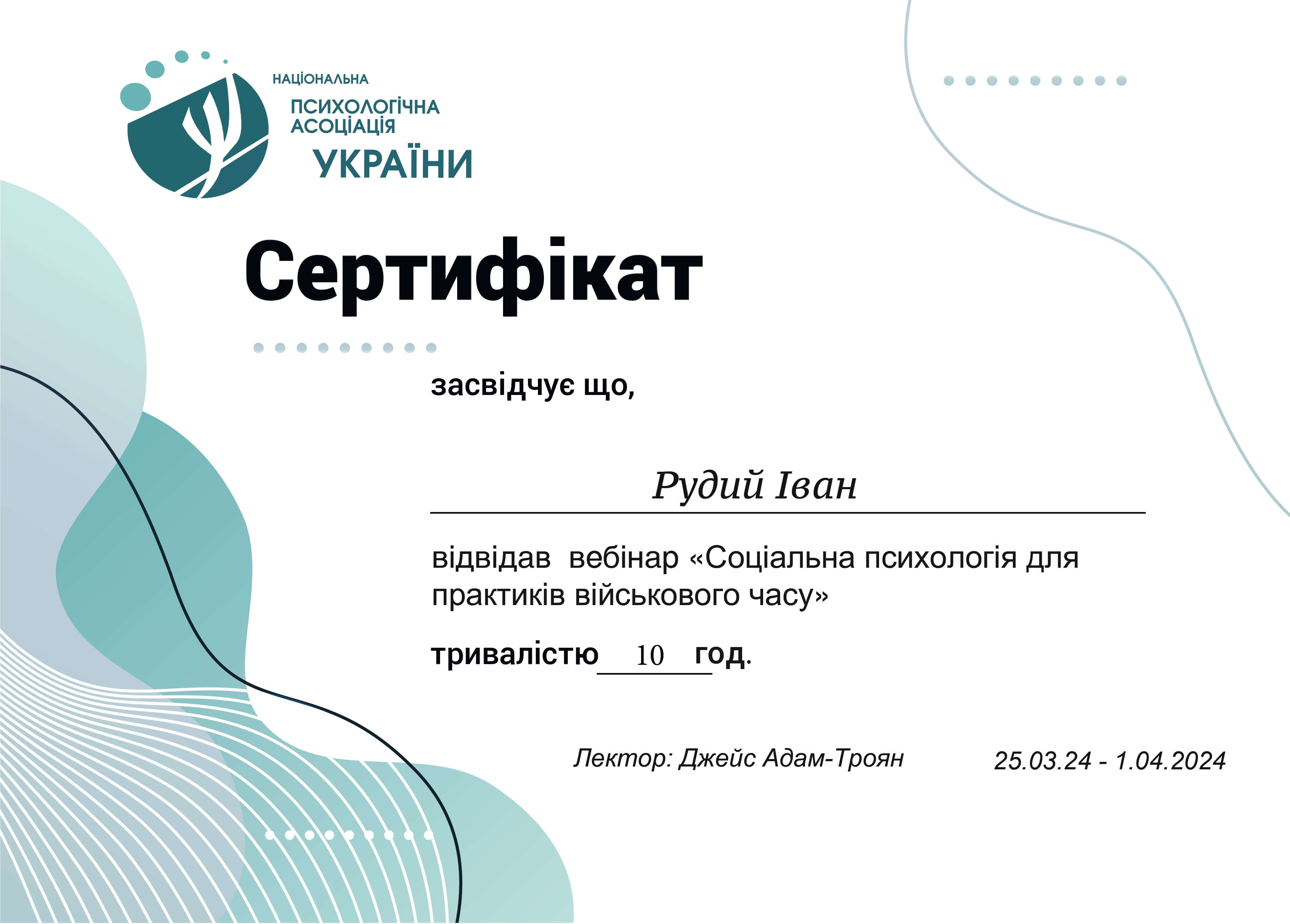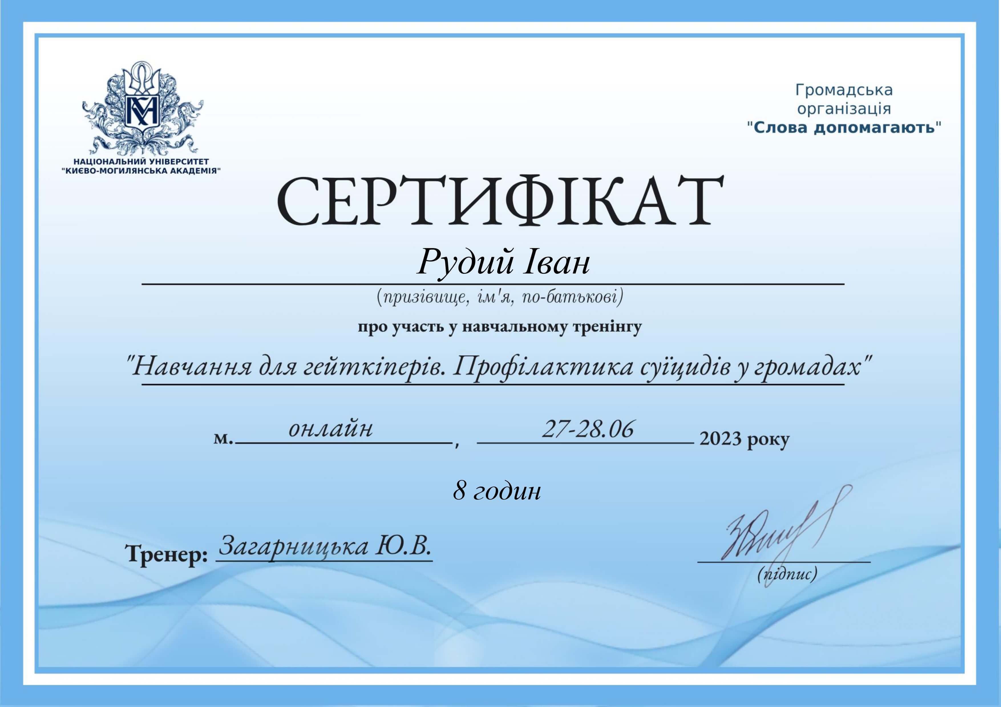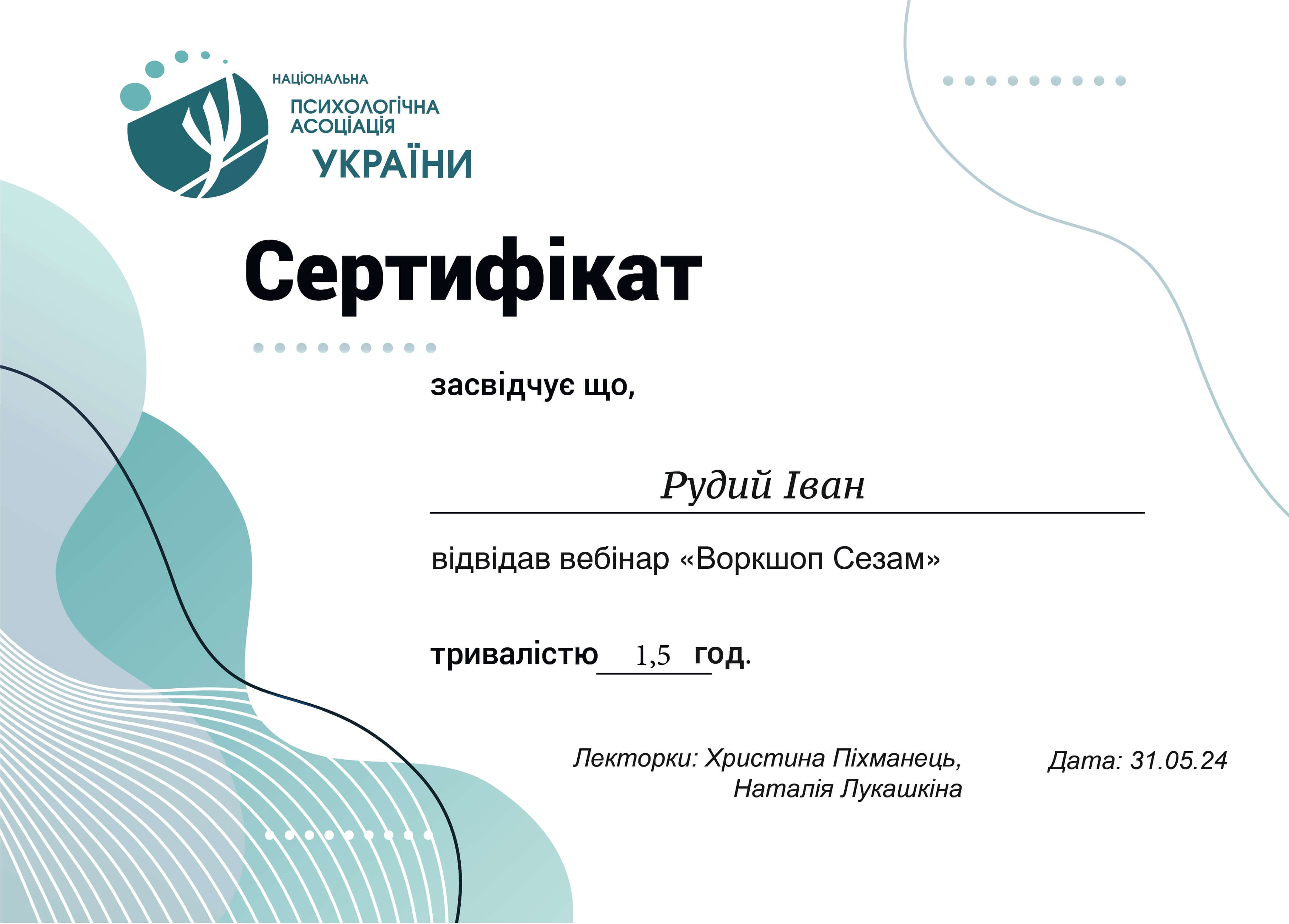 По завершенню навчання успішно здав сертифікаційний екзамен.