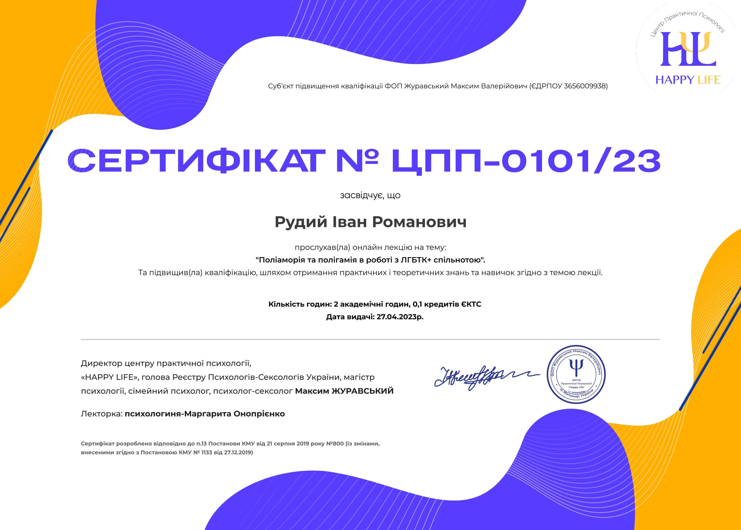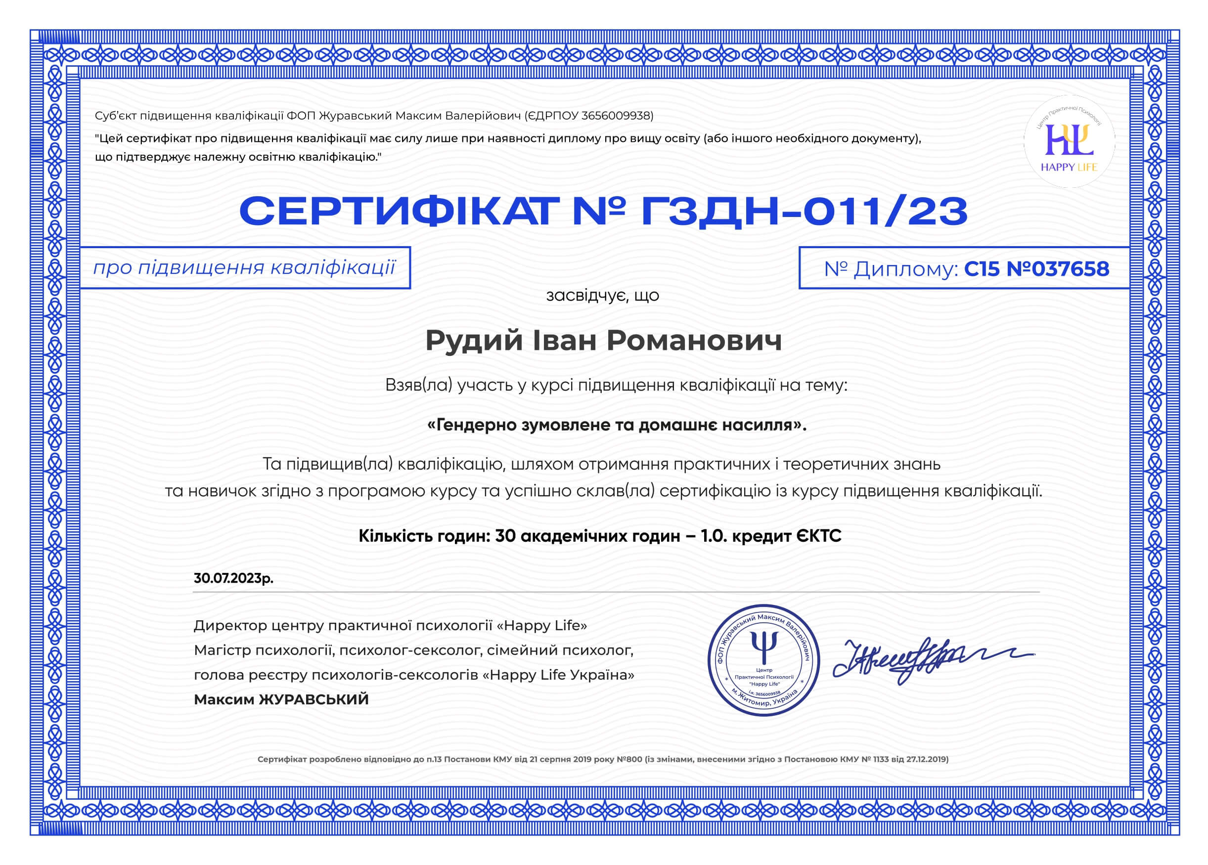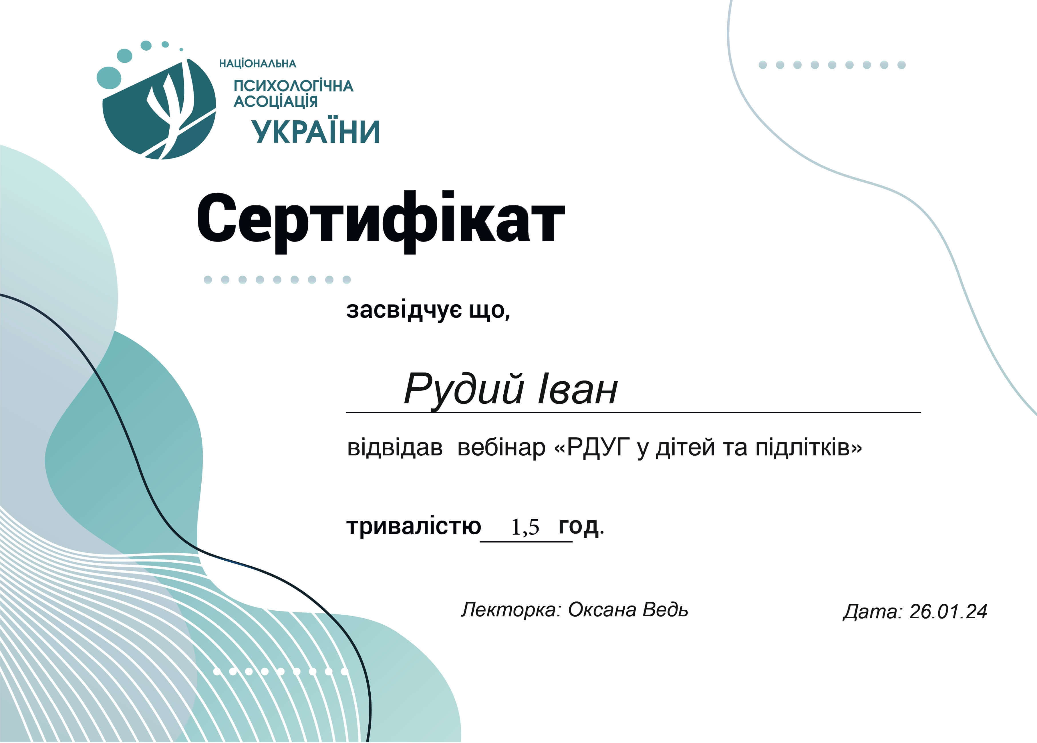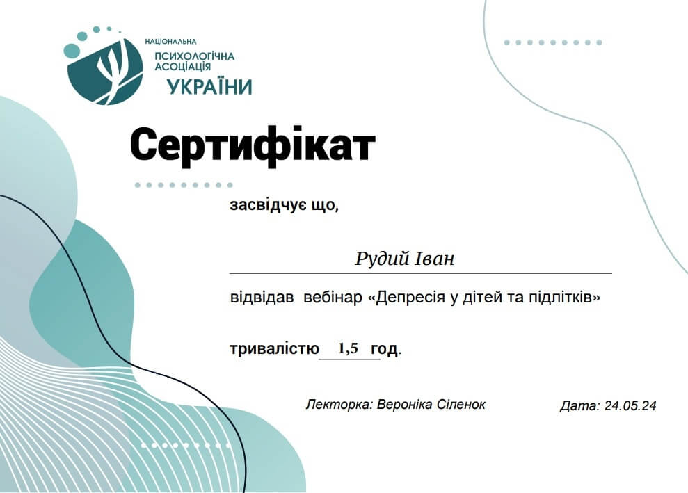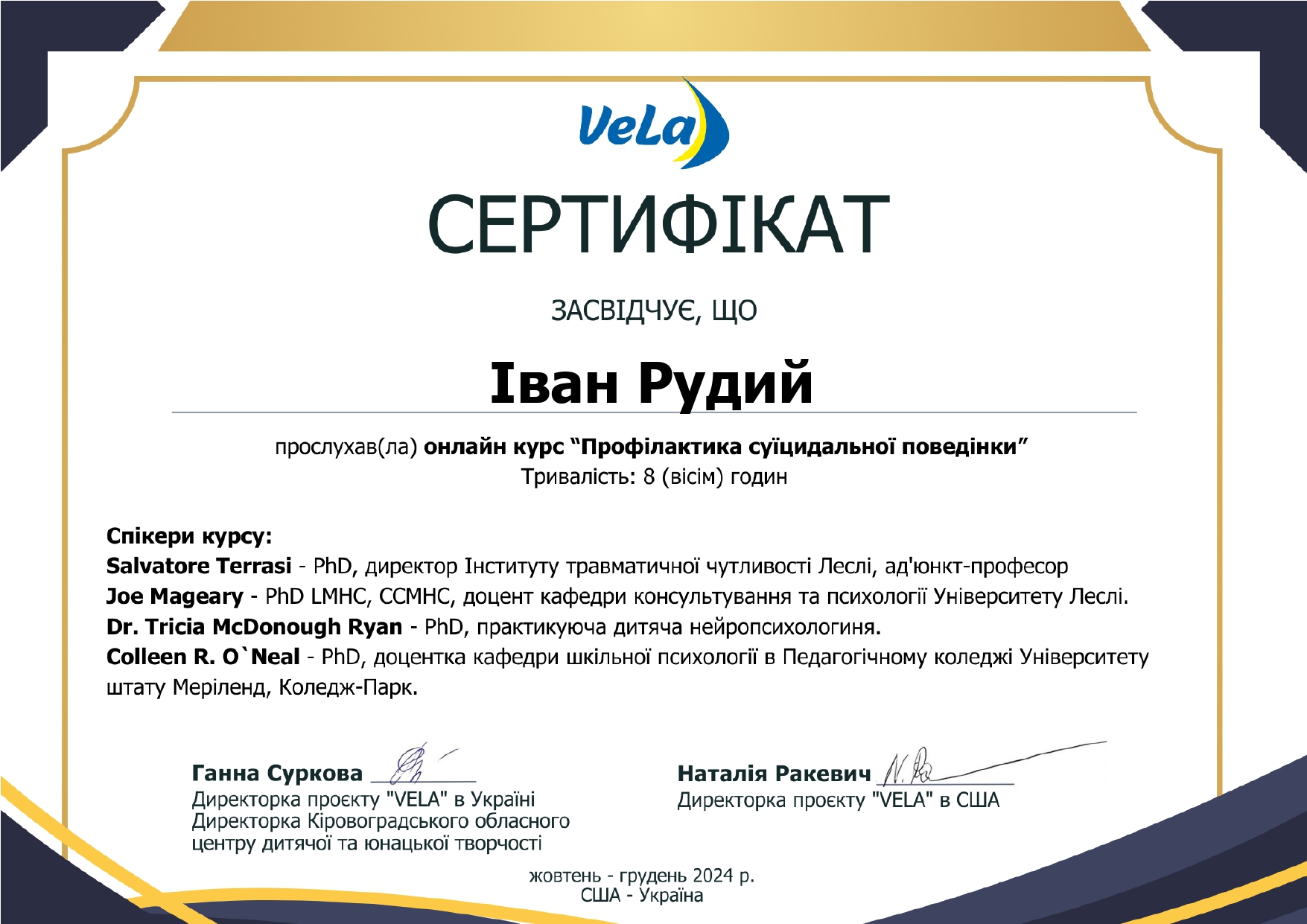 По завершенню навчання успішно здав сертифікаційний екзамен.