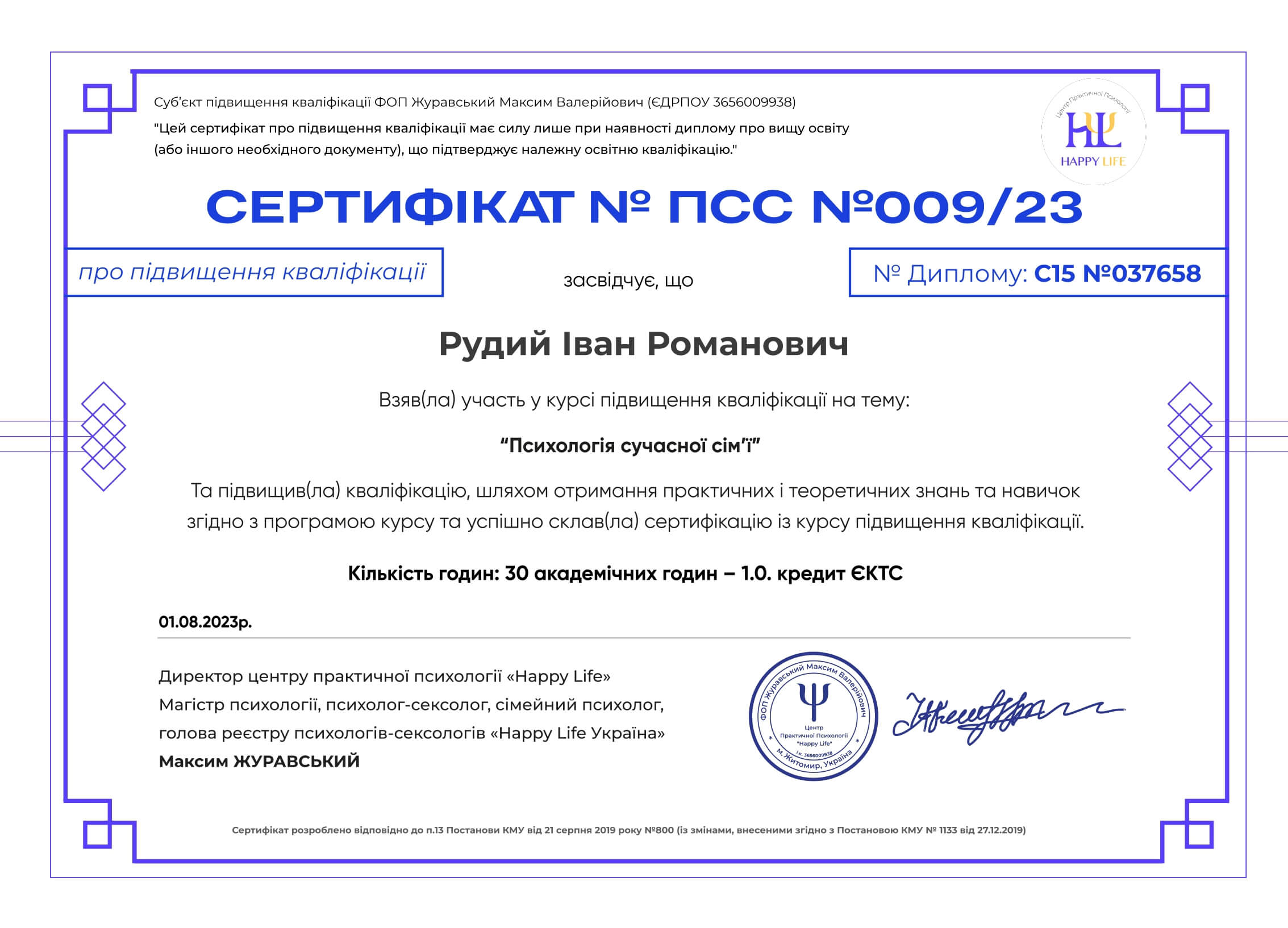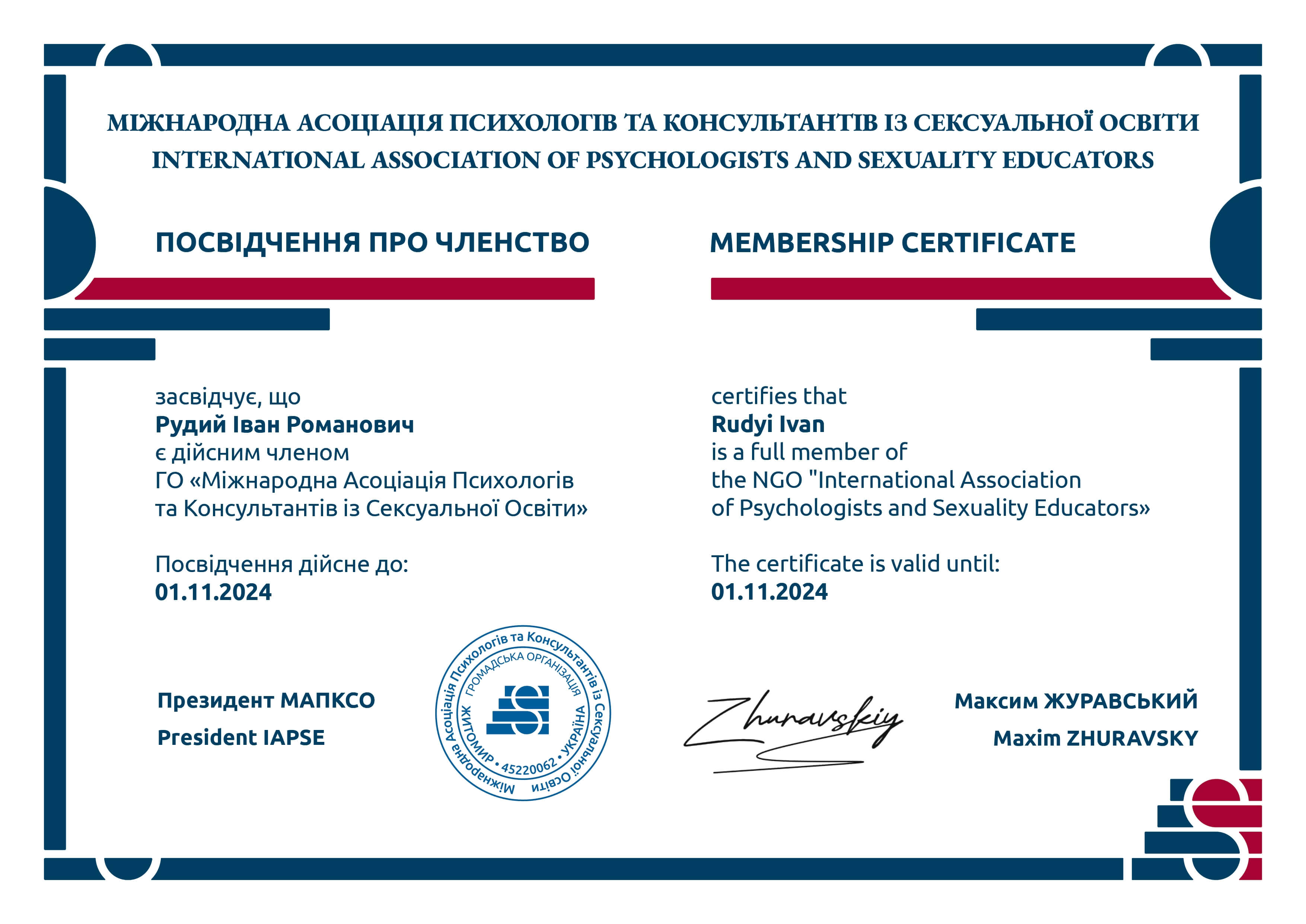 Освітня платформа з психології і сексуальної освіти, курс "Сімейне консультування" під керівництвом практикуючого психолога, гештальт-терапевта та супервізора І.Огданського 2022 р. (2 місяці)