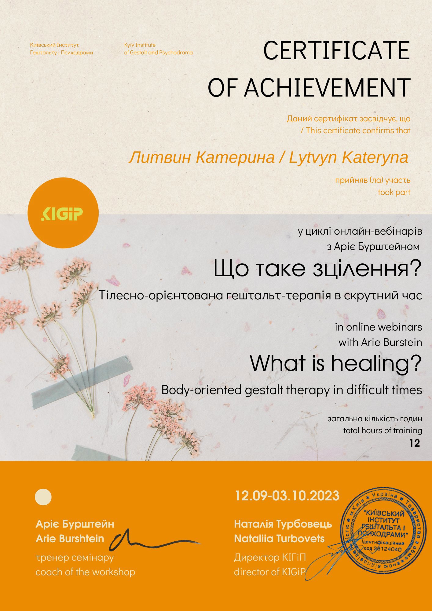Киевский институт гештальта и психодрамы – 1й ст. (2018 г.)